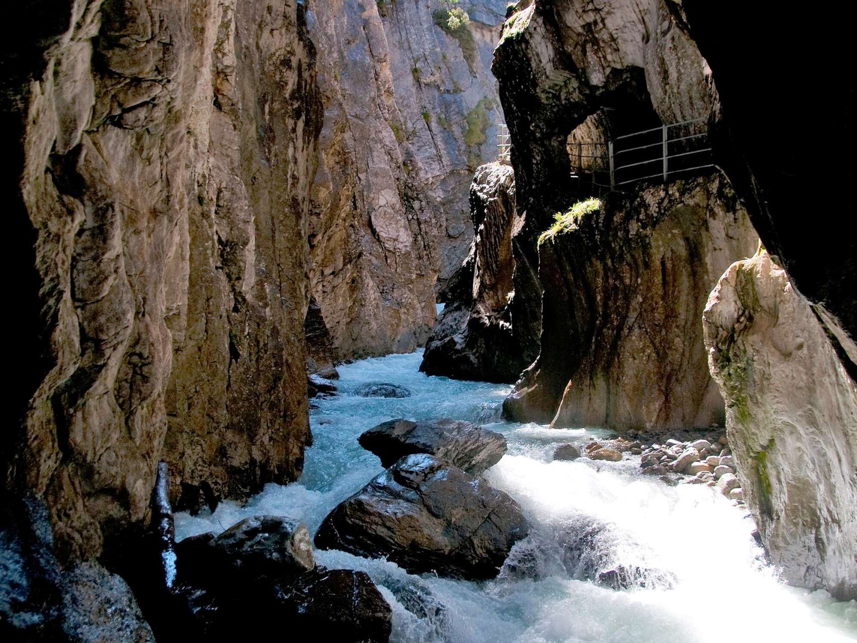 Im Haslital, zwischen den Ortschaften Meiringen und Innertkirchen, hat sich die Aare in Zehntausenden von Jahren ihren Lauf durch die Kalkfelsen gebahnt. Entstanden ist eine 1,4 Kilometer lange und bis zu 200 Meter tiefe Schlucht, die streckenweise nur 1 bis 2 Meter breit ist. Die Aareschlucht ist sowohl von Meiringen wie auch von Innertkirchen durchgehend begehbar. Tipp: In den Monaten Juli und August ist sie jeweils freitags und samstags mit Beleuchtung bis 22 Uhr geöffnet.