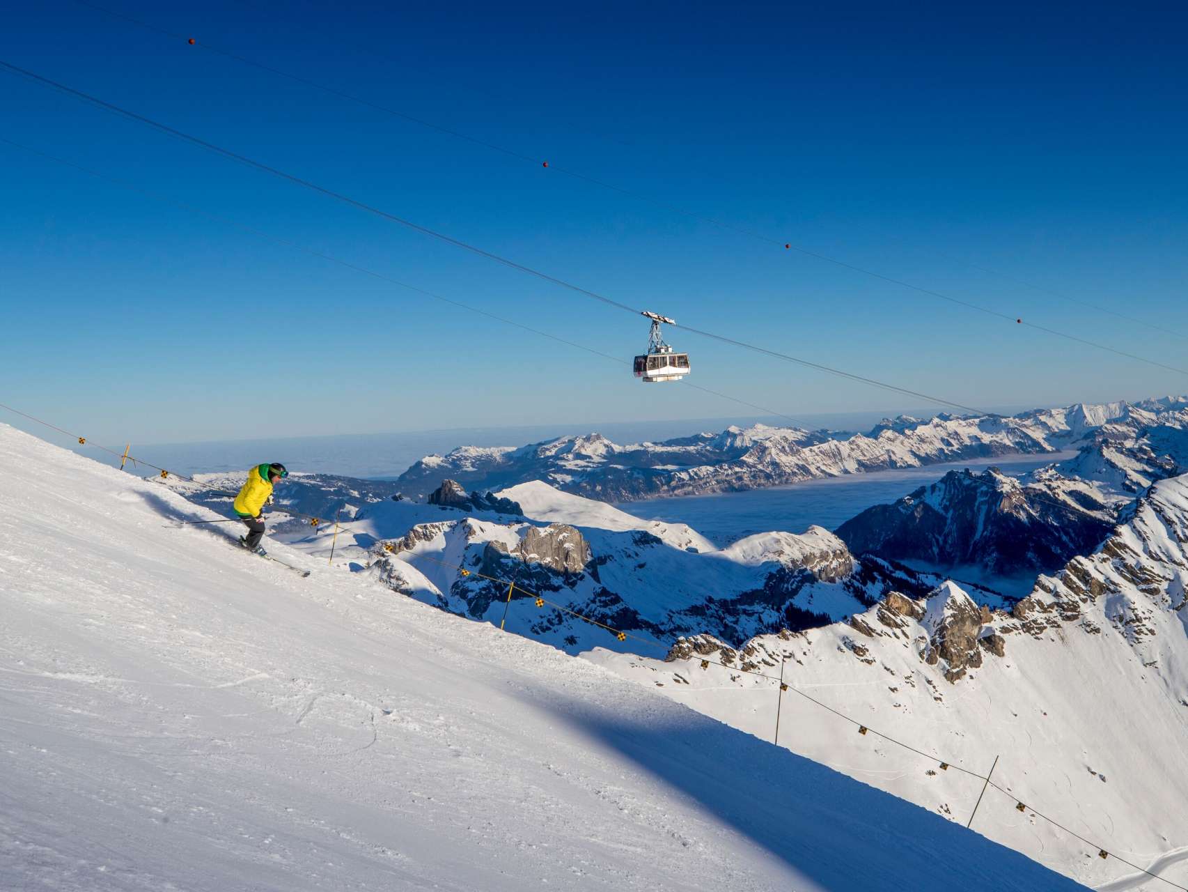Adrenalin ist auf der Piste Nr. 9, der Direttissima garantiert. Mit einer Neigung von 88 Prozent ist sie die steilste Piste in der Jungfrau Region. Hier hätte sich sogar James Bond überwinden müssen. Die Abfahrt startet bei der Station Birg und führt direkt in der Falllinie hinunter ins Engetal. Es erklärt sich von selbst, dass nur geübte Skifahrer*innen die Direttissima in Angriff nehmen sollten.