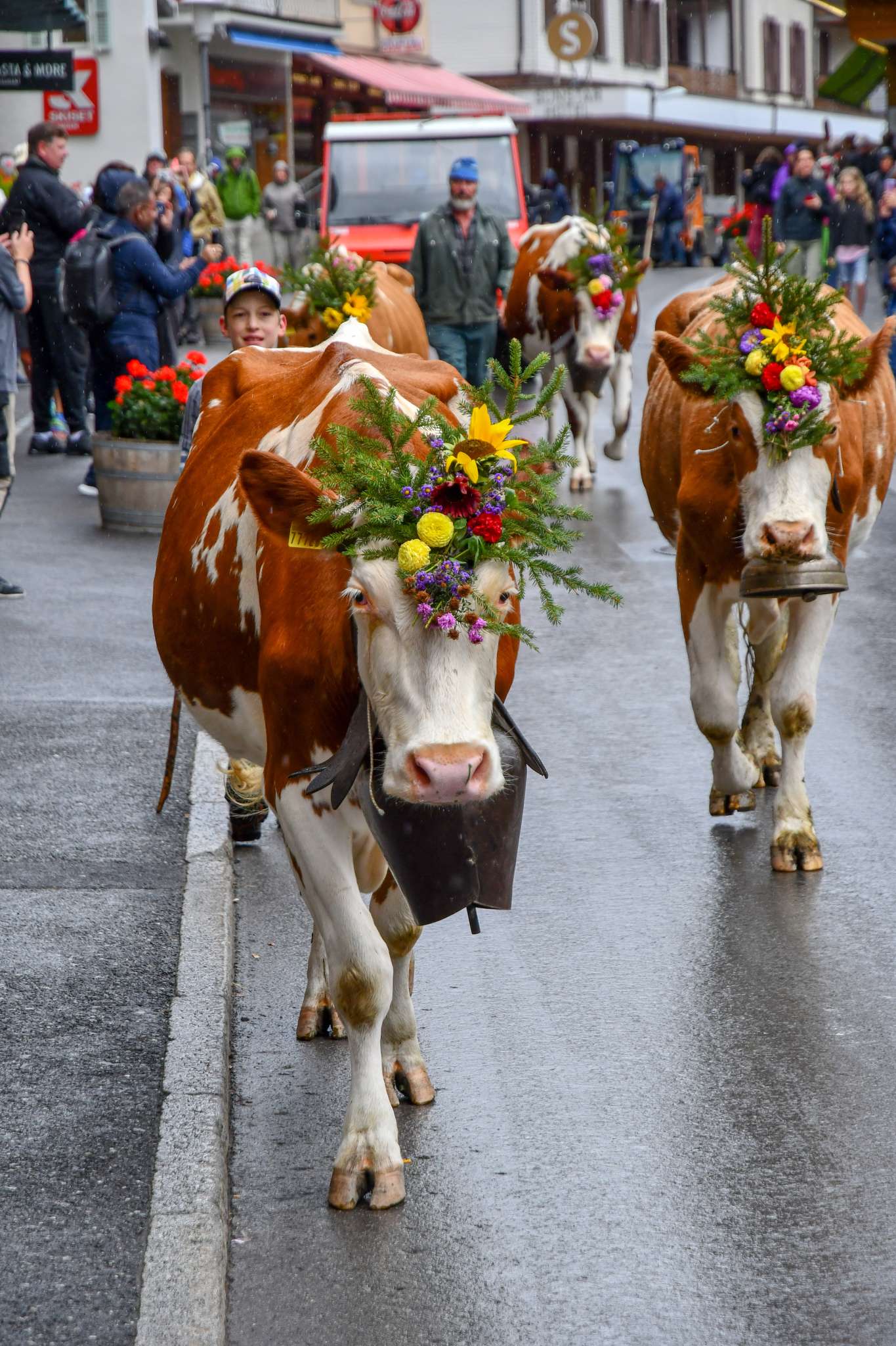 In Wengen findet der traditionelle Alpabzug von der Alp-Wengen statt. Die geschmückten Tiere ziehen durchs Dorf, wo sich Einheimische und Gäste versammeln, um dieses herbstliche Schauspiel mitzuerleben.