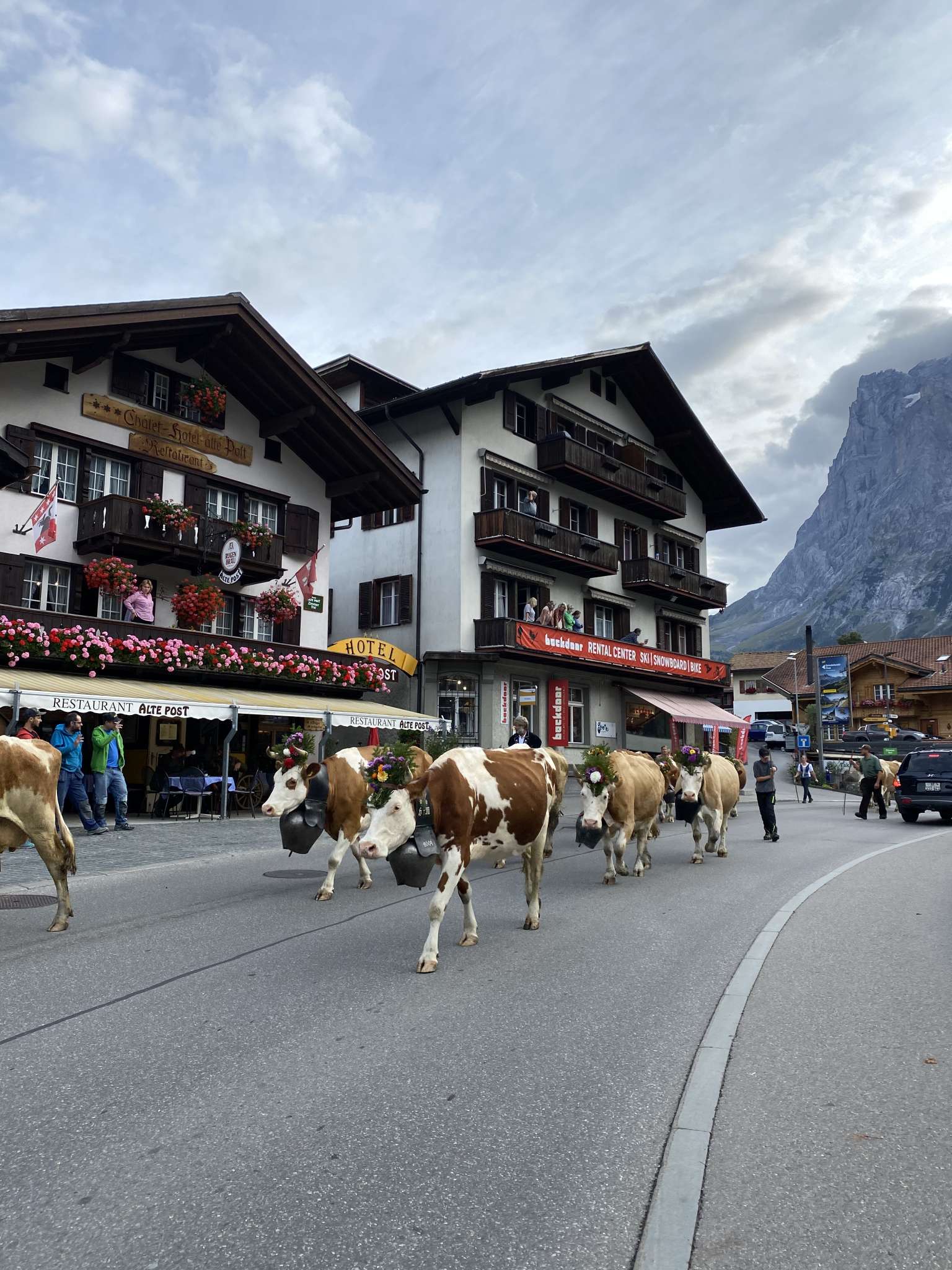 Auch in Grindelwald lässt sich diese Tradition erleben. Ein besonderes Erlebnis ist der Alpabzug von der Bussalp nach Grindelwald, bei dem die Kühe durch die malerische Landschaft hinunter ins Dorf ziehen – stets begleitet vom Klang der Kuhglocken.