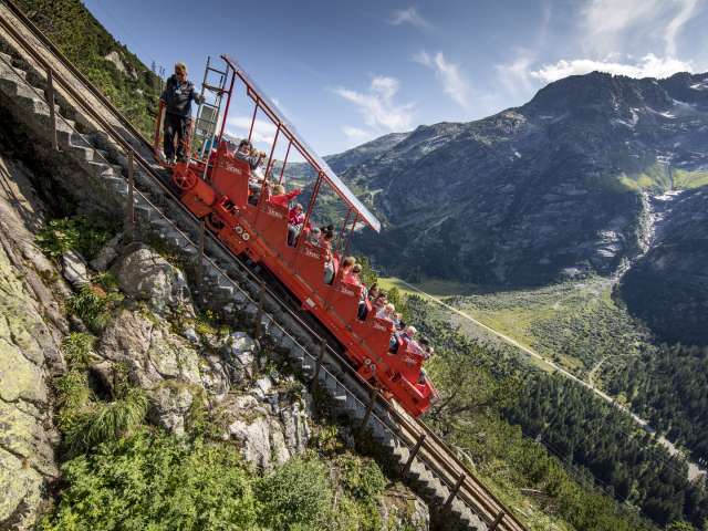 Als Naturresort erster Güte ist es der ideale Ausgangspunkt für Wanderungen und Bergtouren, aber auch für abenteuerliche Fahrten auf der Gelmerbahn – die steilste offene Standseilbahn Europas – oder eine spektakuläre Überquerung der Handeckfallbrücke.