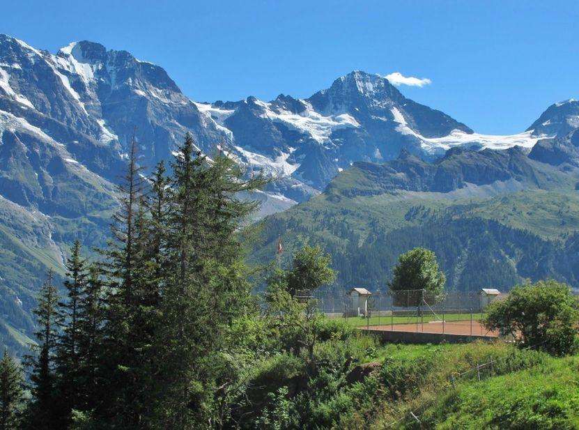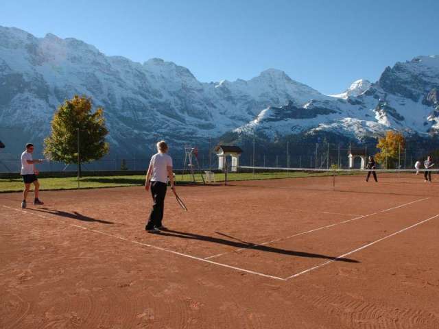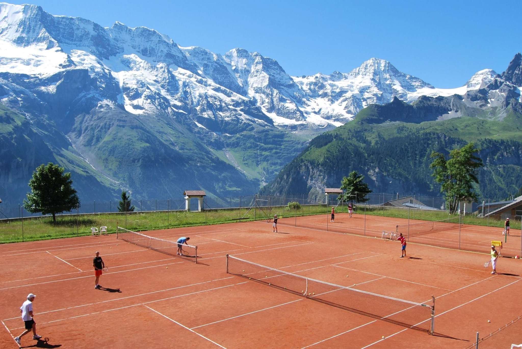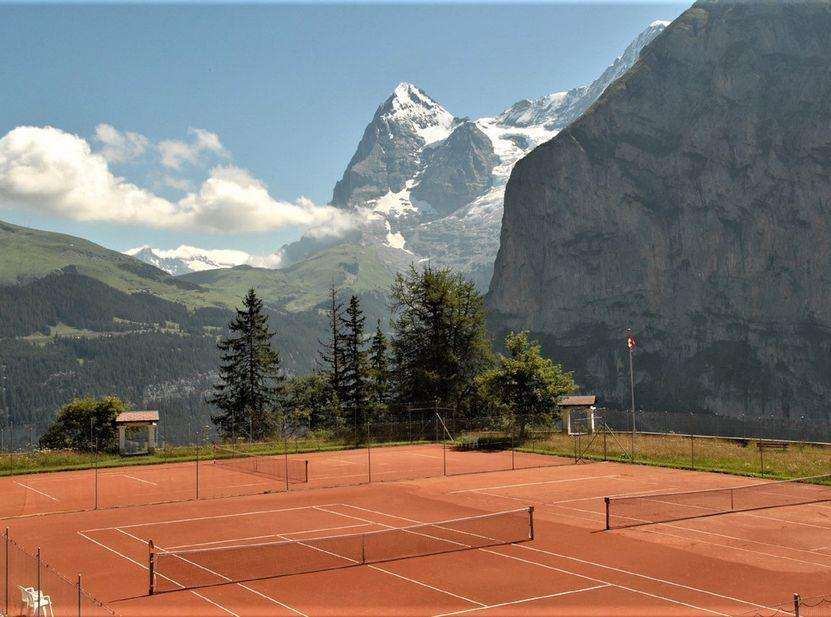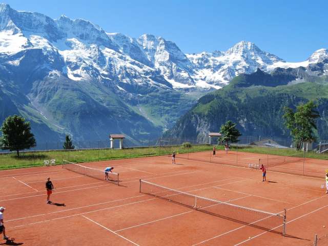 Das Sportchalet Mürren bietet 4 Outdoor-Sandtennisplätze mit der wohl spektakulärsten Aussicht ins Lauterbrunnnental. Die Plätze können einzeln gemietet werden. Die Netze sind im Sommer immer gespannt. Die Tennisplätze liegen auf 1650 m ü. M. und sind am unmittelbaren Ende der Bergwand gebaut, auf der sich Mürren befindet. Sie sind Teil des Sportchalets, welches den Gästen – nebst einer Umkleide-Möglichkeit – auch Toiletten, Duschen und als Gastgeber auch eine Unterkunft mit Mahlzeiten anbietet. Anfangs Juli wird eine Tenniswoche mit einem professionellen Tennislehrer durchgeführt. Gäste können die Courts aber auch individuell buchen. Vor Ort stehen das nötige Mietmaterial, Garderoben und Toiletten zur Verfügung.