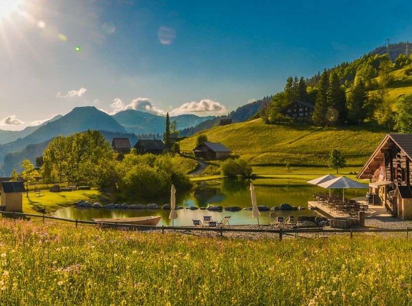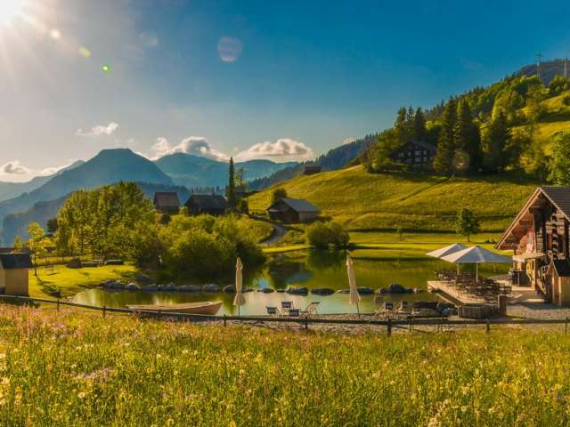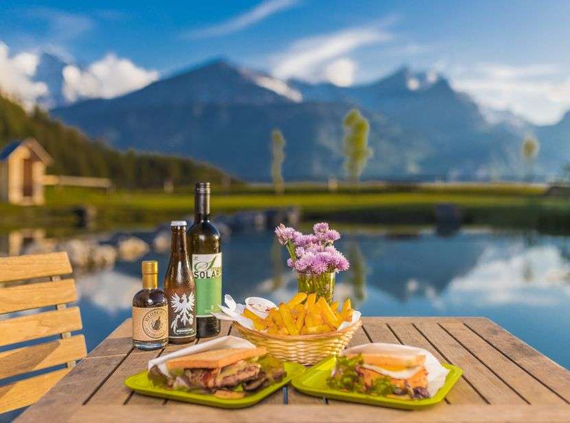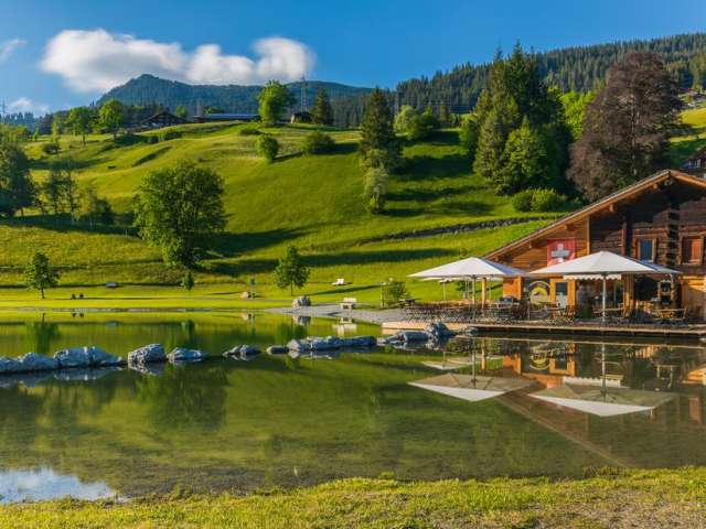 Der Sommertreffpunkt von Gästen und Einheimischen. Vor dieser prächtigen Bergkulisse musst du einfach den Sprung ins kühle Nass wagen.