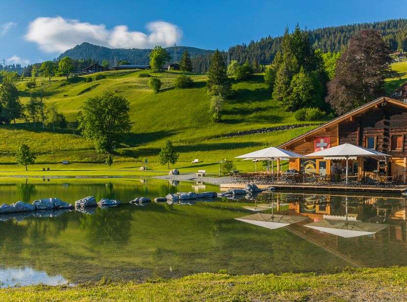 Der Badesee Hasliberg befindet sich direkt neben der Talstation der Gondelbahn Twing-Käserstatt. Nebst dem Badevergnügen – für Kinder ist eigens ein seichter Bereich angelegt mit Sandstrand und Spielzeug – bietet der See auch Liegewiesen, Slackline, Bibliothek, Strandspiele, Umkleidekabinen, ein Bistro mit Sommersnacks und eine Dusche im Freien mit Blick aufs Bergpanorama. Sonnenschirme stehen dir gratis zur Verfügung.