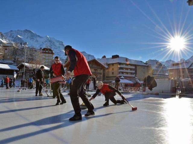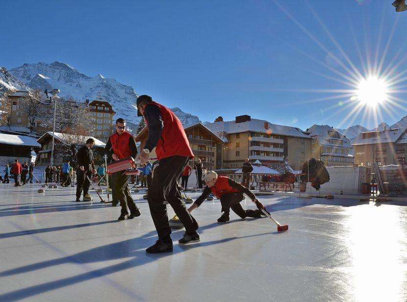 Wage dich aufs Glatteis – beim Curling in Wengen, ob in der Halle oder unter freiem Himmel.
