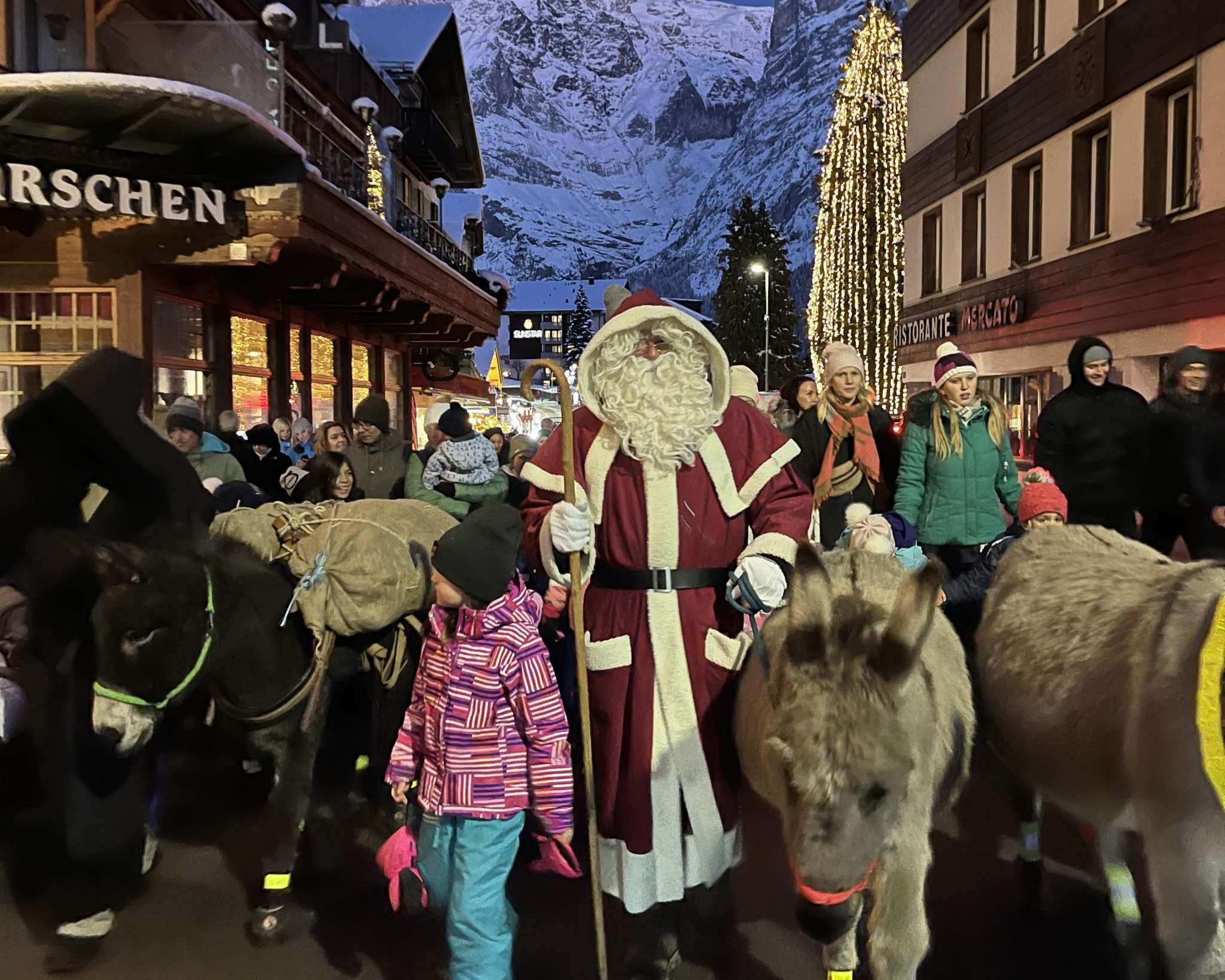 In Grindelwald zieht der Samichlaus mit Schmutzli und Eseln durchs Dorf und sorgt für winterliche Feststimmung.