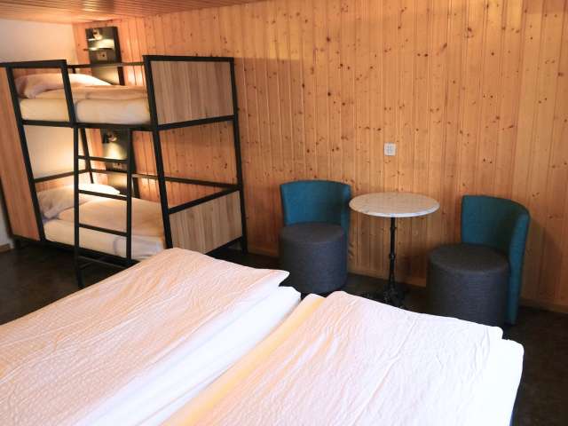 Wir bieten Doppel- und Familienzimmer mit privatem Badezimmer in unserer Eiger Lodge Chic. Wenn du der einfache Typ bist und kein Problem mit Gemeinschaftsbädern hast, dann ist die Eiger Lodge Easy perfekt für dich. Dort findest du private Doppel- bis 6-Bettzimmer oder Betten in gemischten Mehrbettzimmern.