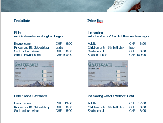 Miete Schlittschuhe CHF 6.00