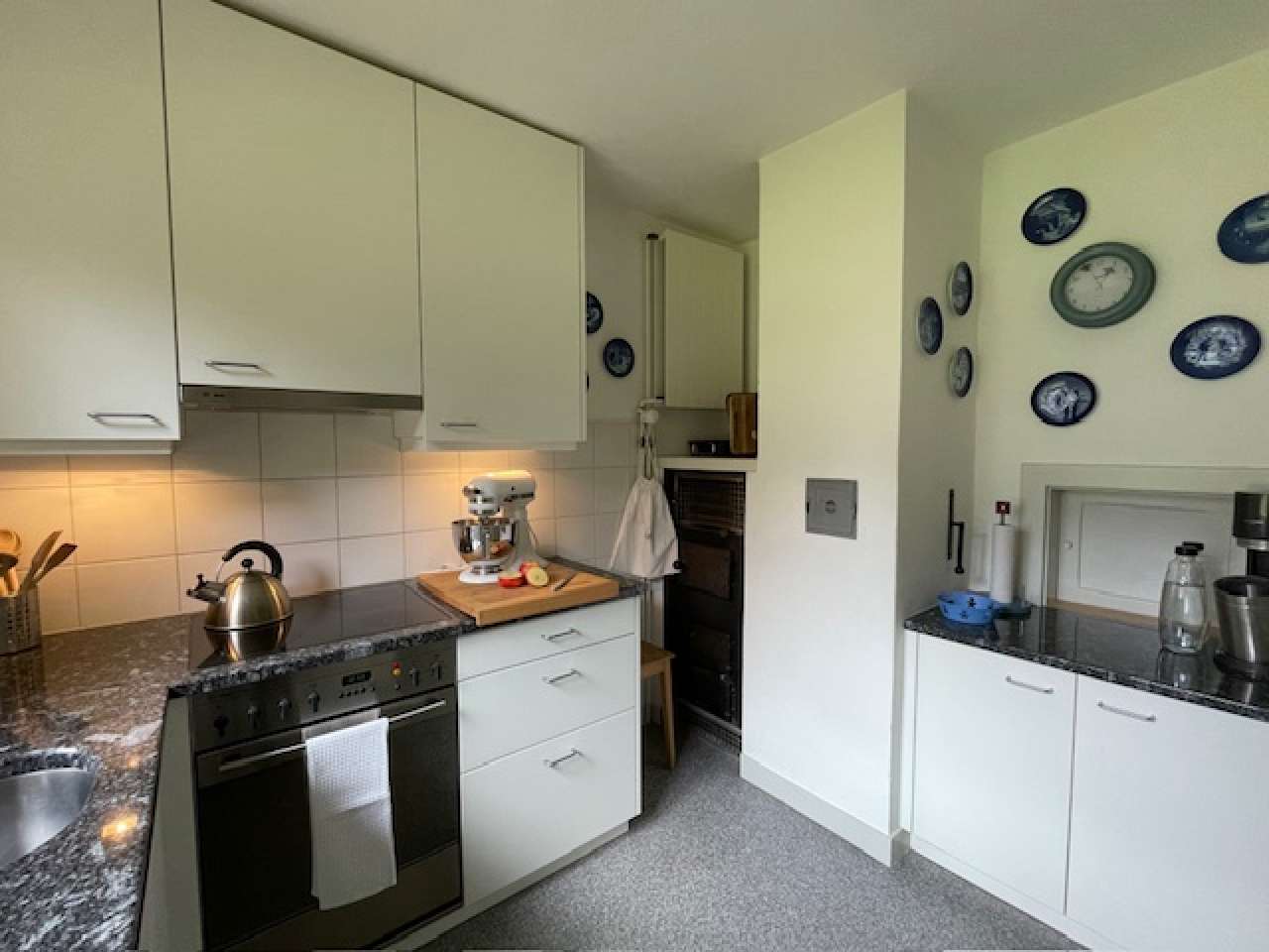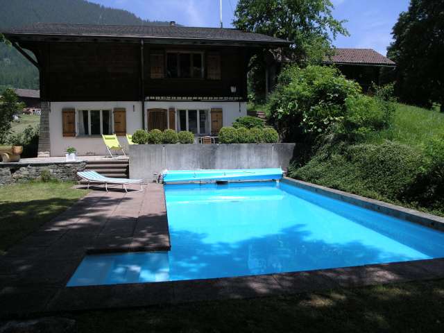 Im Sommer: grosser privater Garten mit Sitzplatz, 8,5 x 4m Aussen-Pool zur Alleinbenützung (in Betrieb: 7.6.-13.9., beheizt 21-23C, mit Kindersicherungs-Abdeckung, Sand-Filter-Anlage, Bade-Tücher), Liegewiese, Gartenpavillon, Garten-Mobiliar, alter Baumbestand, Holz-Brunnen (Trinkwasser), grosser Sitzplatz mit Esstisch und Holz-Eckbank.