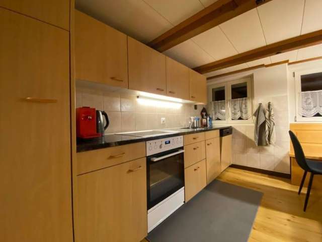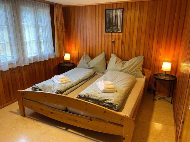 Entspanne dich mit deiner ganzen Familie in unserer gemütlichen Unterkunft. Die Wohnung ist sehr geräumig mit den 3 Schlafzimmern, Wohnzimmer und Küche. Das Haus hat bereits ein historisches Alter, die Raumhöhe ist eher niedrig, die Küche und das Badezimmer wurden renoviert und sind auf dem heutigen Stand der Technik. Die Wohnung muss hauptsächlich noch mit Holz geheizt werden, in den Schlafzimmern sowie dem Badezimmer haben wir Elektoradiatoren montiert, welche bei Bedarf auch eingeschaltet werden können. Eine abschliessbare Garage steht zur Verfügung und bis zu 2 zusätzliche Parkplätze vor dem Gebäude.