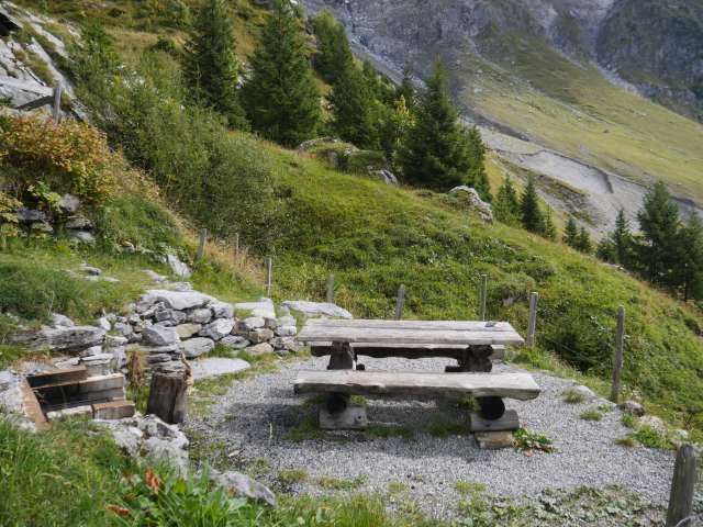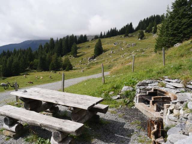 Die gemütliche Grillstelle mit Unterstand (1813 m ü. M.) befindet sich direkt am Wanderweg Grosse Scheidegg – Grindelwald. Das Tal von Grindelwald liegt ausgebreitet vor uns in der Abendsonne.
