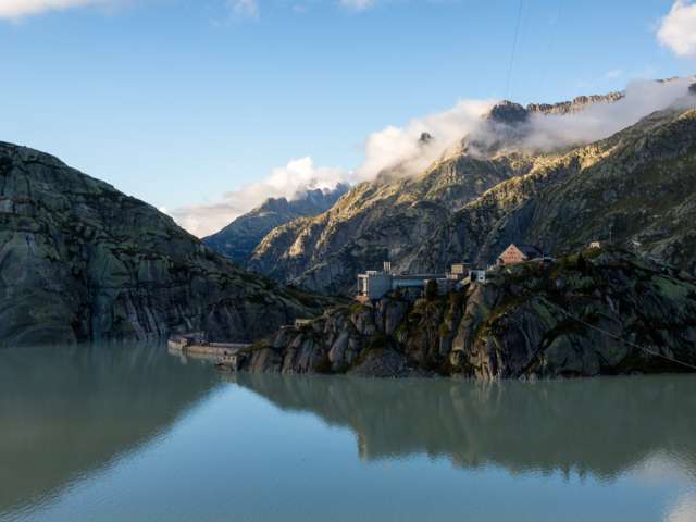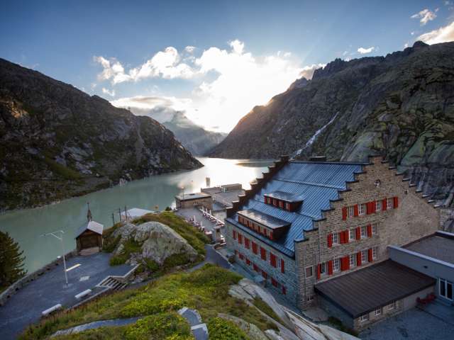 Im Grimsel Hospiz treffen Moderne und Vergangenheit aufeinander. Hier stand bereits 1142 das erste urkundliche erwähnte Gasthaus der Schweiz. Anno 1932 machte es als erstes elektrisch beheizbares Haus Europas Furore. Dieser Umweltgedanke verpflichtete auch bei der umfassenden Renovation des Hotels von 2008 bis 2010 – bewusst und umweltschonend wird das gesamte Haus mit der Abwärme aus der Stromproduktion beheizt. Denn als historisches Viersterne-Alpinhotel thront das Haus sozusagen im Herzen des KWO-Gebiets majestätisch über dem Grimselstausee.