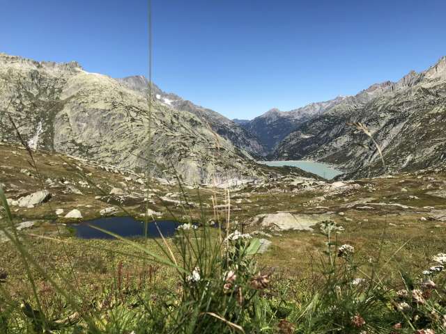 Der Einstieg liegt etwas nördlich (hinter) der Talstation der Gelmerbahn in der Handegg. Mehrheitlich Platten- und Wandklettrei mit guten Strukturen unterbrochen durch eine steile Verschneidung.