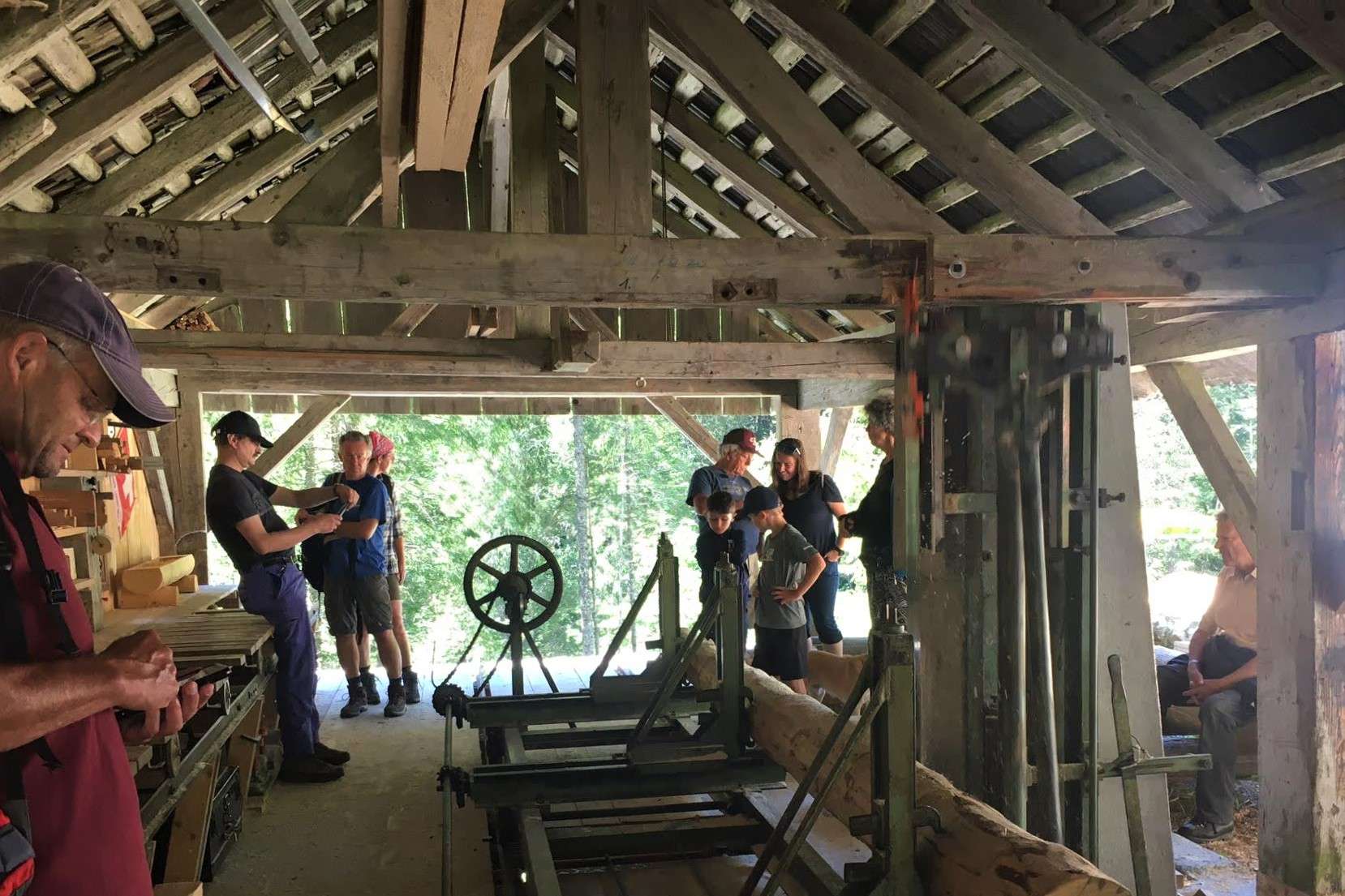 Bei einem Besuch ohne Führung kann die Sägerei von aussen betrachtet werden, sieht sie aber nicht in Betrieb.