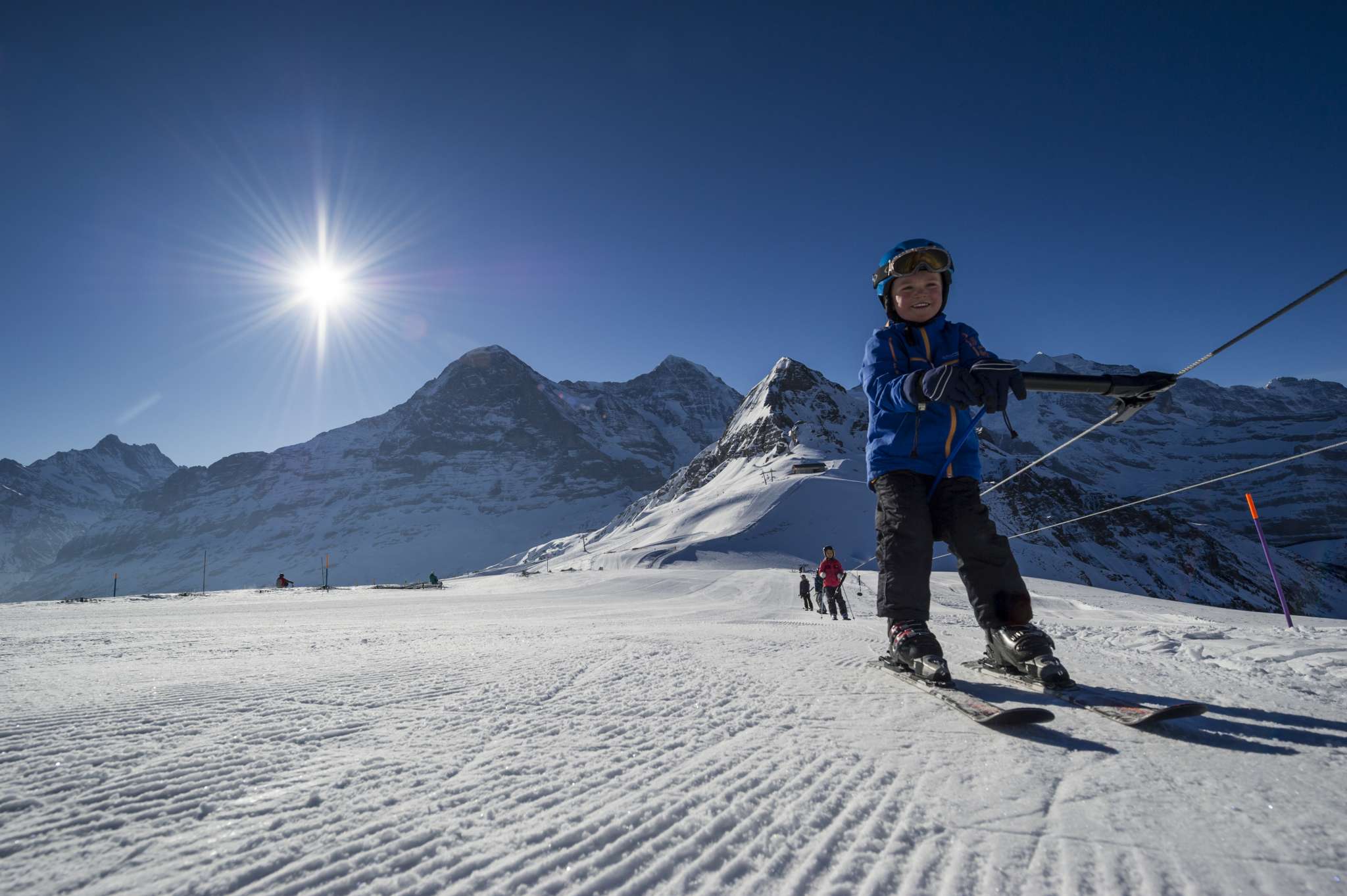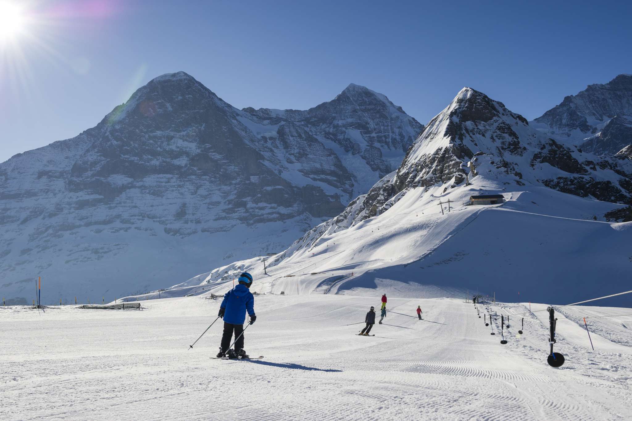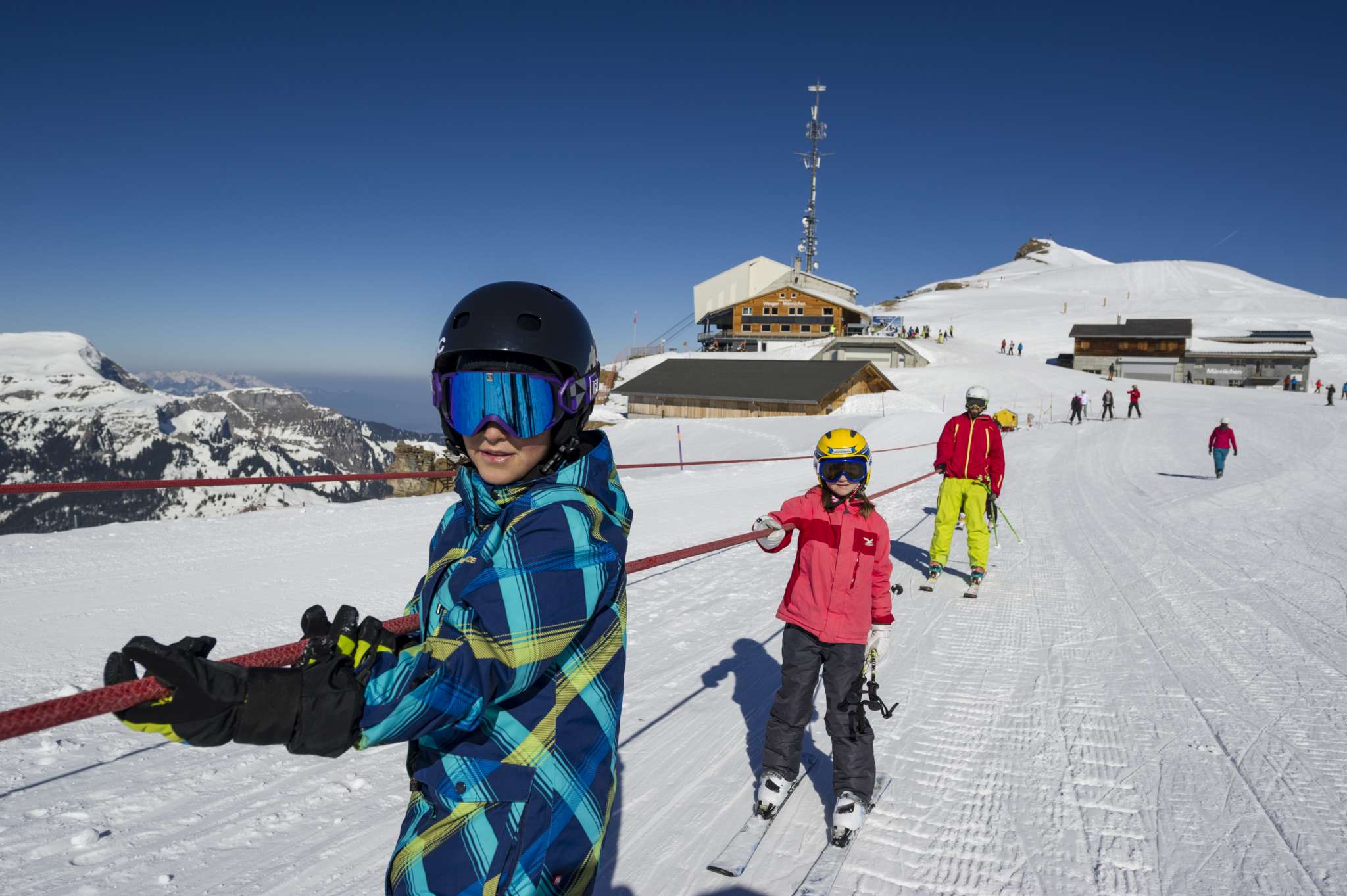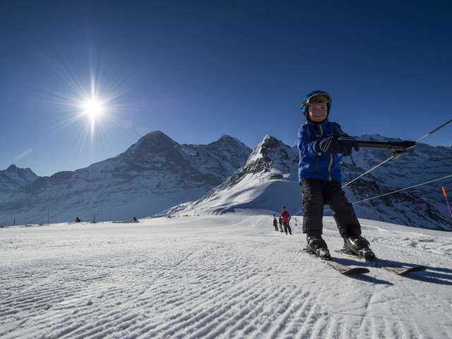 Das Kinderparadies Männlichen befindet sich bei der Bergstation der Gondelbahn Grindelwald – Männlichen bzw. der Luftseilbahn Wengen – Männlichen.