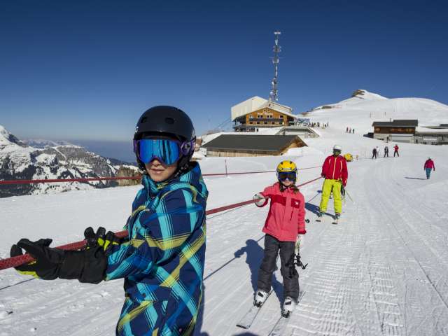 Auf dem Gelände für Anfänger*innen stehen ein Tellerlift, ein Förderband und ein Seillift zur Verfügung.