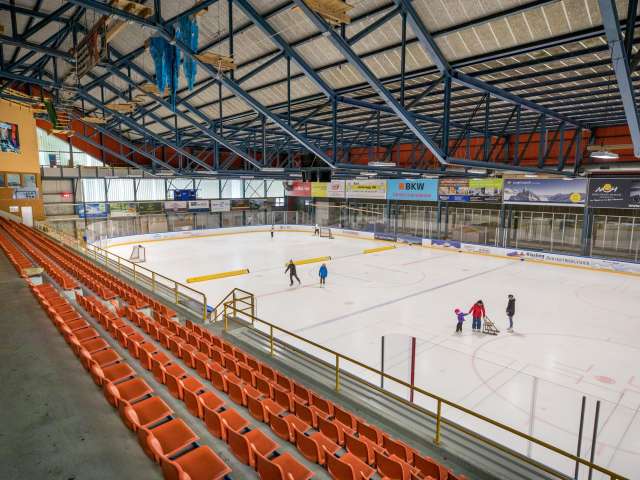 Die nötige Ausrüstung wird im Sportzentrum vermietet. Die Eishalle lässt sich auch für Trainingslager oder andere Veranstaltungen reservieren.