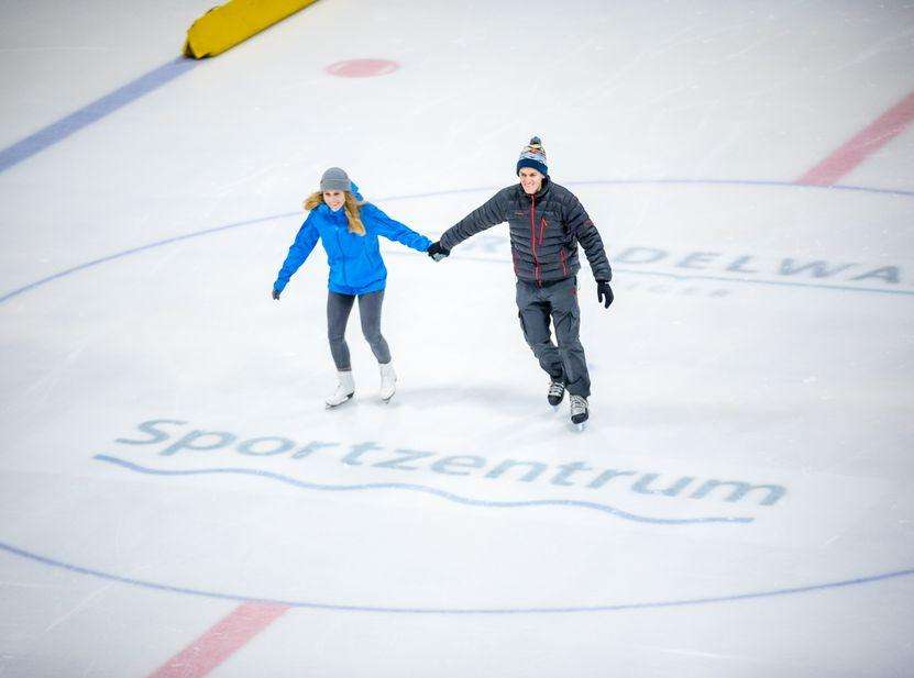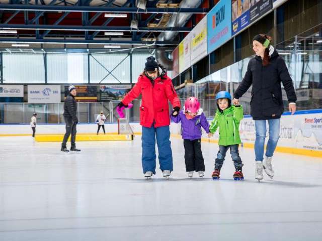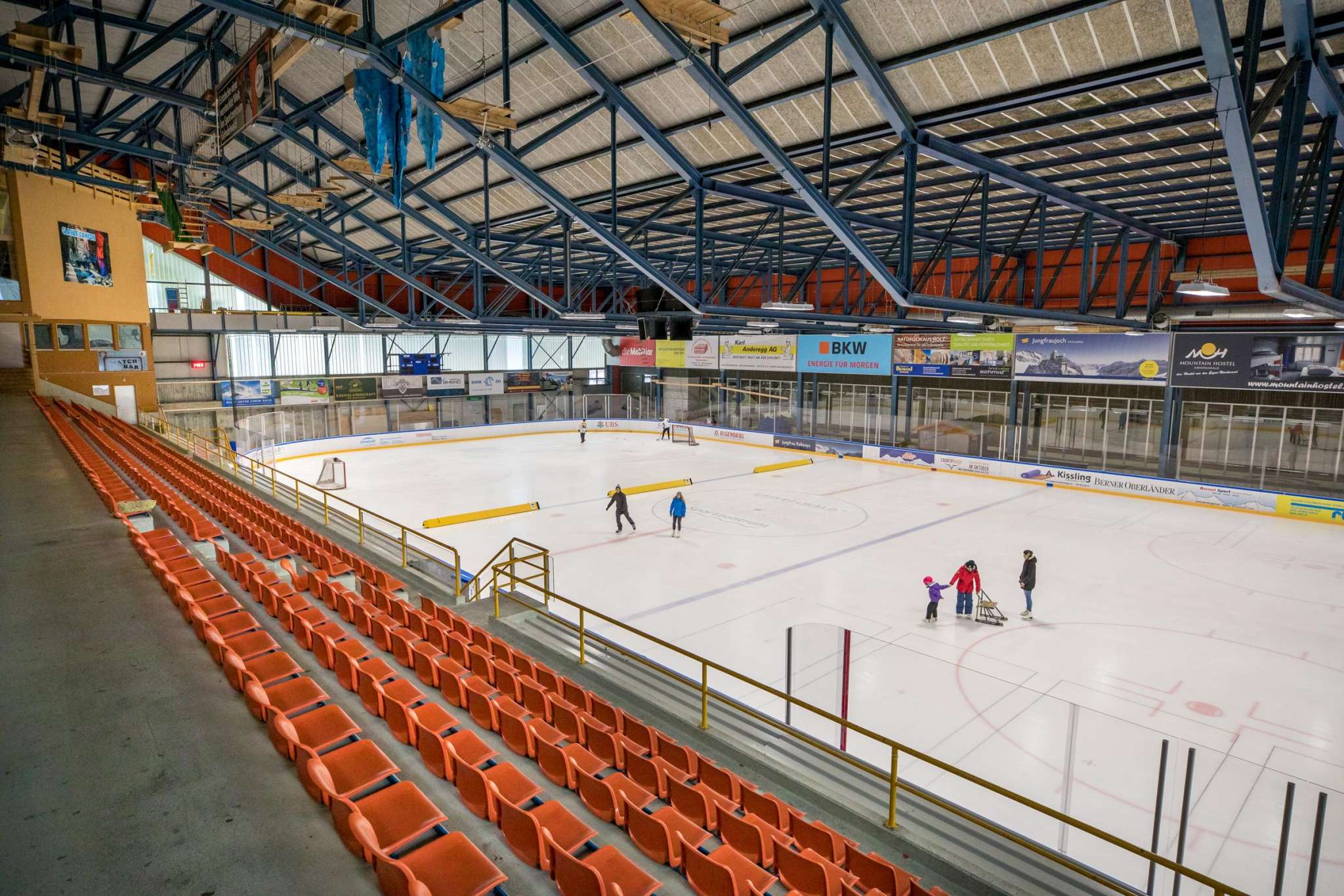 Die Kunsteisbahn im Sportzentrum lädt zum Schlittschuhlaufen oder Eishockeyspielen – und dies von Ende Juli bis Ende April.