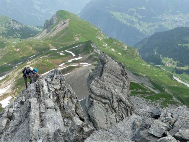 Die klassische Klettertour im Berner Oberland erlaubt ein unvergleichliches Erlebnis mit Sicht auf die umliegenden Bergketten. Die exponierten Gipfel sollten keinem Kletterer vergönnt sein. Wer den morgendlichen Zustieg etwas verkürzen möchte, gönnt sich eine Nacht in der Lobhornhütte, von welcher aus man in 1h 40min bis zum Fuss der Lobhörner gelangt. Der Zustieg von Sulwald her dauert etwa 2h 45min. Nachdem alles Material montiert ist, beginnt die herrliche Kletterei über die Zipfelmütze, das Kleine und das Grosse Lobhorn. Eingepackt hast du ein 60m Seil, 10 Express-Karabiner und ein paar Schlingen. Damit kommst du bequem über die Routen in den Schwierigkeitsgraden 2b bis 4c. Da viele Passagen ein alpiner Weg und keine Kletterroute sind, gehören auch die Bergschuhe ins Gepäck. Topos sind in den Kletterführern Interlaken (Vertical Sport) oder Plaisir zu finden. Bevor du vom letzten Zacken aus in den Sattel abseilen, geniessst du noch einmal die herrliche Aussicht bei einem ausgiebigen Gipfelrast. Die Lobhörner liegen auf rund 2500 Metern über Meer zwischen dem Soustal und dem Saustal. Sie sind von Sulwald her am einfachsten zu erreichen. Eine lohnenswerte Tour ist auch der Zustieg (bergab) vom Schilthorn her.