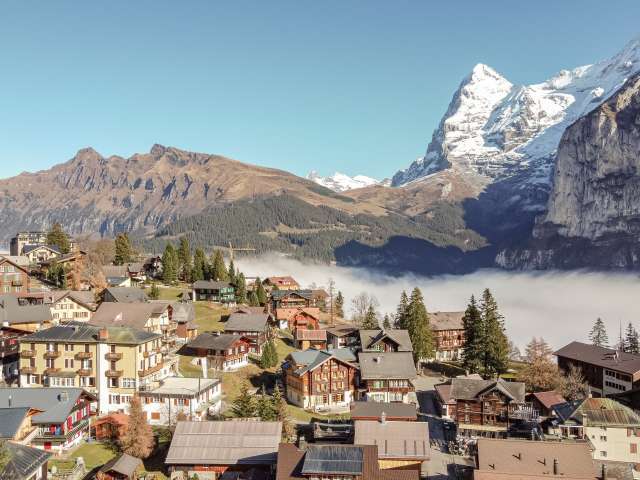 Das Bergdorf Mürren liegt auf 1650 m ü.M. und hinterlässt mit seinen braunbegrannten Chalets und der atemberaubenden Sicht auf Eiger, Mönch und Jungfrau bei den Besuchern einen bleibenden Eindruck. In Mürren verbringen Sie einen unvergesslichen Urlaub ohne Hektik und Lärm. In 30 Minuten führt Sie die Luftseilbahn auf den Gipfel des 2970 m hohen Schilthorns. Geniessen Sie hier die spektakuläre 360° Aussicht auf die Bergwelt. Fühlen Sie die Einheit der Natur, profitieren Sie mit Ihrer Familie das ganze Jahr hindurch von vielfältigen Ausflugs- und Sportmöglichkeiten oder lassen Sie sich im Alpine Spa Mürren von Kopf bis Fuss verwöhnen.