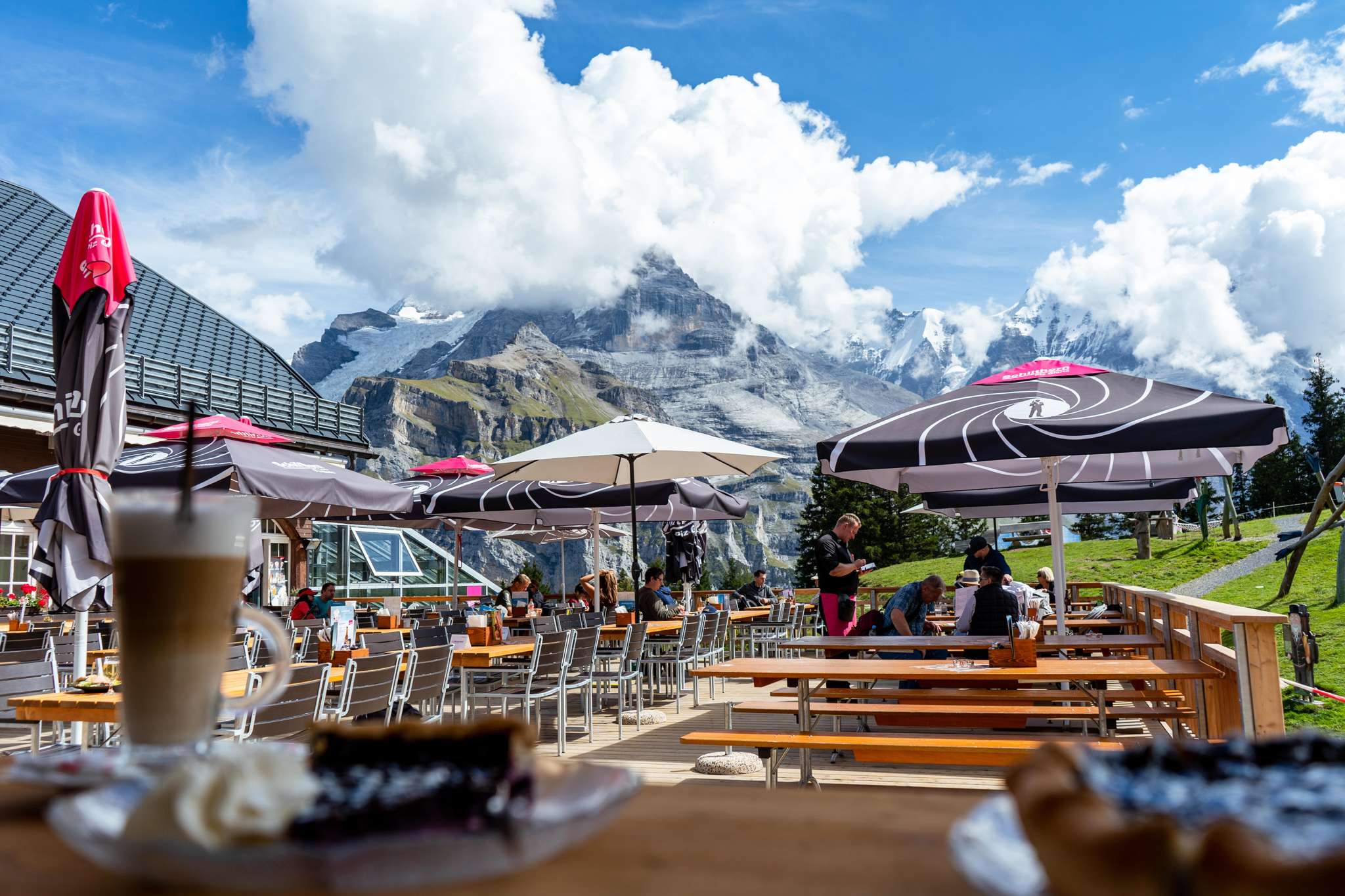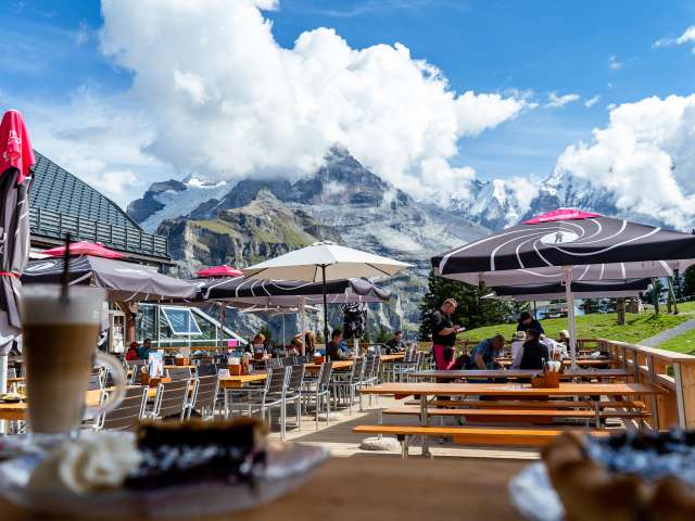 Das Restaurant auf dem Hausberg von Mürren ist mit der Standseilbahn Mürren – Allmendhubel oder zu Fuss einfach zu erreichen.