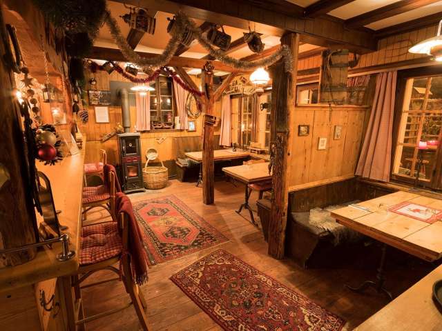 Mit einer telefonischen Reservation können auch Nicht-Hotelgäste in der Pension Gimmelwald ein Nachtessen geniessen. Getränke werden den ganzen Tag hindurch serviert, auch ohne Voranmeldung.
