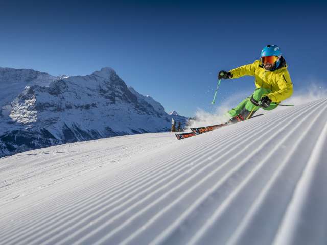 Das und vieles mehr bietet das Skigebiet Grindelwald-First. Insgesamt stehen dir hier 56 Pistenkilometer und 40 Kilometer Wander- und Schlittelwege zur Verfügung.