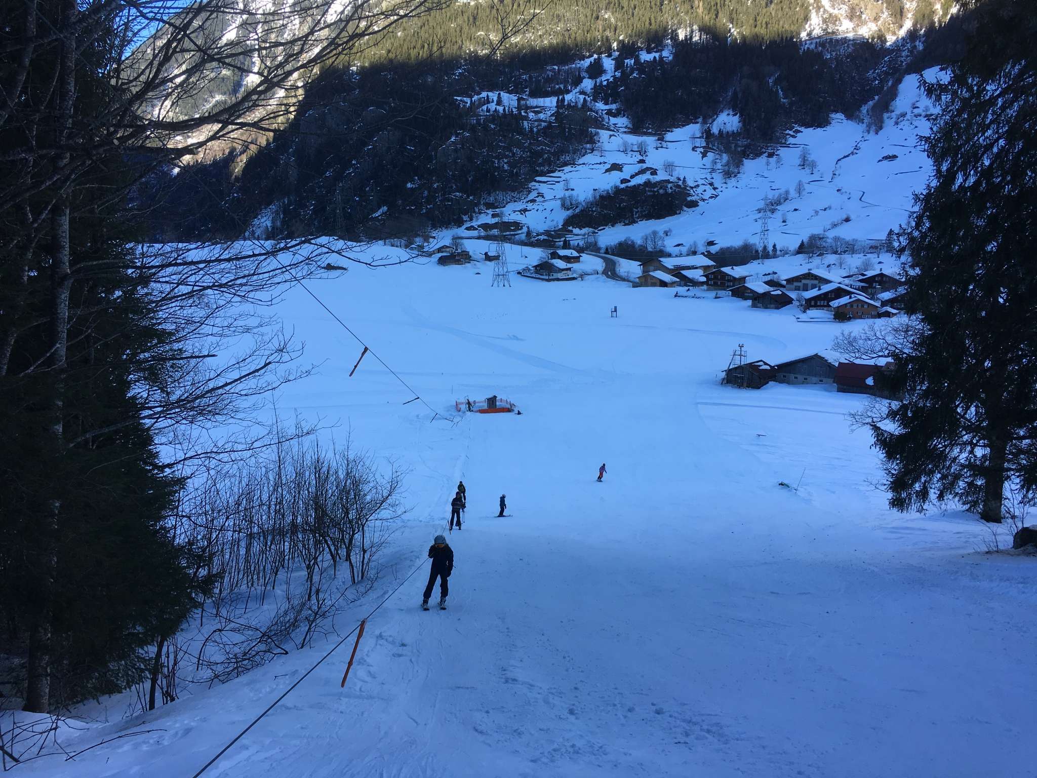 Klein aber oho ist er, der Skilift am Hüsacher, im ruhigen Bergdorf Guttannen. Die Benützung ist kostenlos.