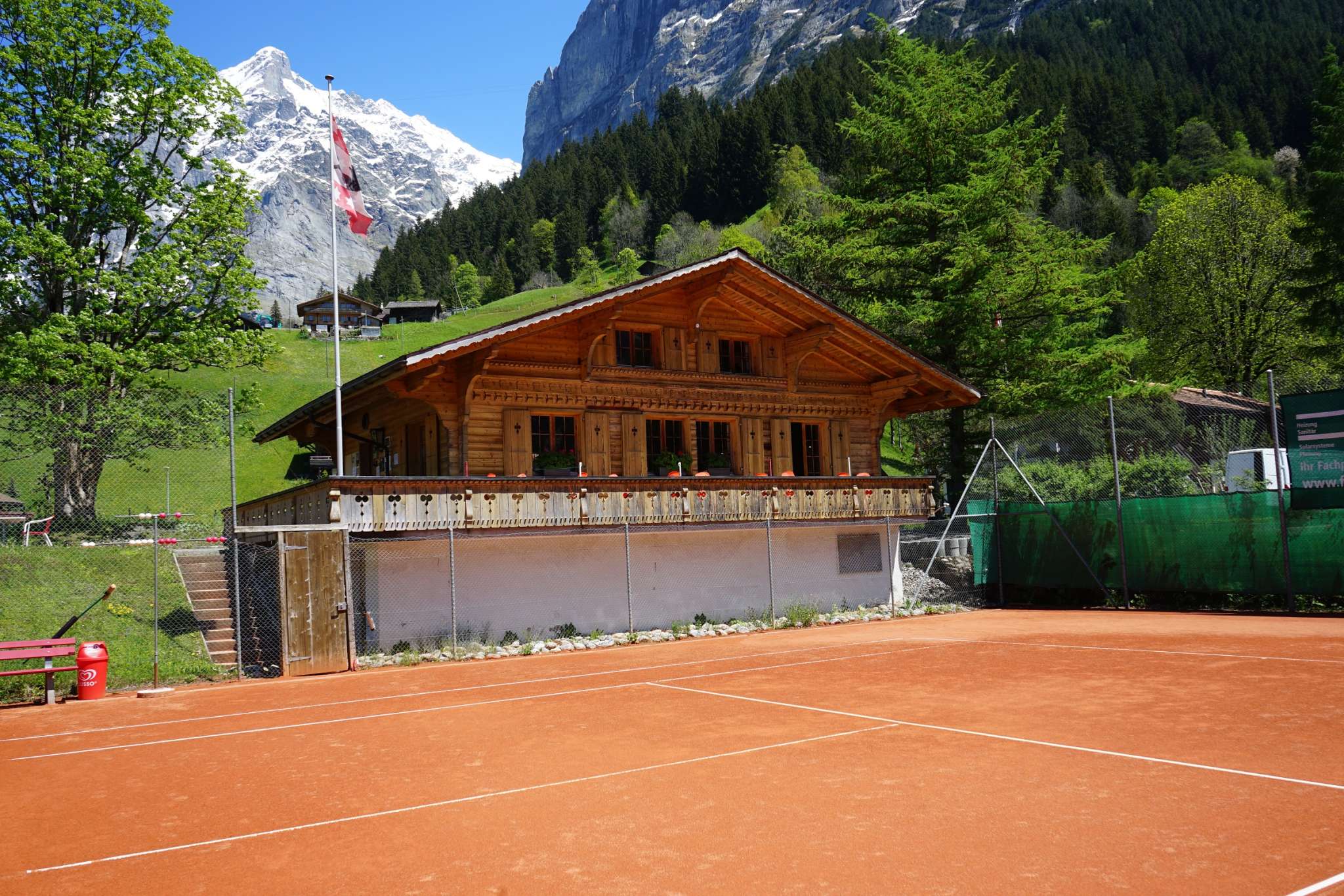 Die Tennisanlage Mettenberg befindet sich im Talgrund und ist mit dem Grindelwald Bus gut erschlossen. Es stehen 4 Sandplätze zur Verfügung. Im Sommer finden wöchentlich Gästeturniere statt. 4 Sandplätze (Freiluft) Wöchentliche Gästeturniere Vermietung von Rackets und Bällen Tennisunterricht (Privat- und Gruppenunterricht) Buche deinen Tennisplatz direkt online. Weitere Informationen unter www.tcgrindelwald.ch. Adresse Tennisanlage: Mettenbergstrasse 18, 3818 Grindelwald