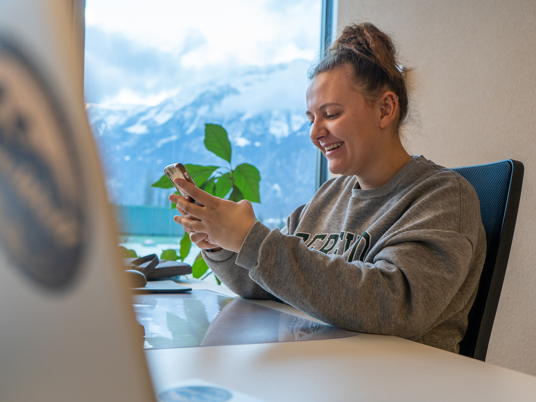 Zusammengefasst: Im Content Management kann ich sehr kreativ sein und selbständig arbeiten. Das gefällt mir. Die Shootings und Drehs gehörten bislang zu den Highlights meiner Ausbildung. Dabei lernt man die Region noch einmal besser kennen – und neben der täglichen Büroarbeit ist die Zeit draussen, in der Natur, in den Bergen eine schöne Abwechslung.