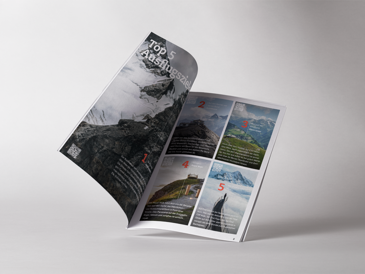 Our guide provides you with 80 pages of information and insider tips on the most beautiful excursion destinations and activities in the Jungfrau Region. The free guide also includes culinary recommendations and historical facts. It is available in German, English and French. Download the latest version of the travel guide or our image brochures, adventure maps and local maps now.