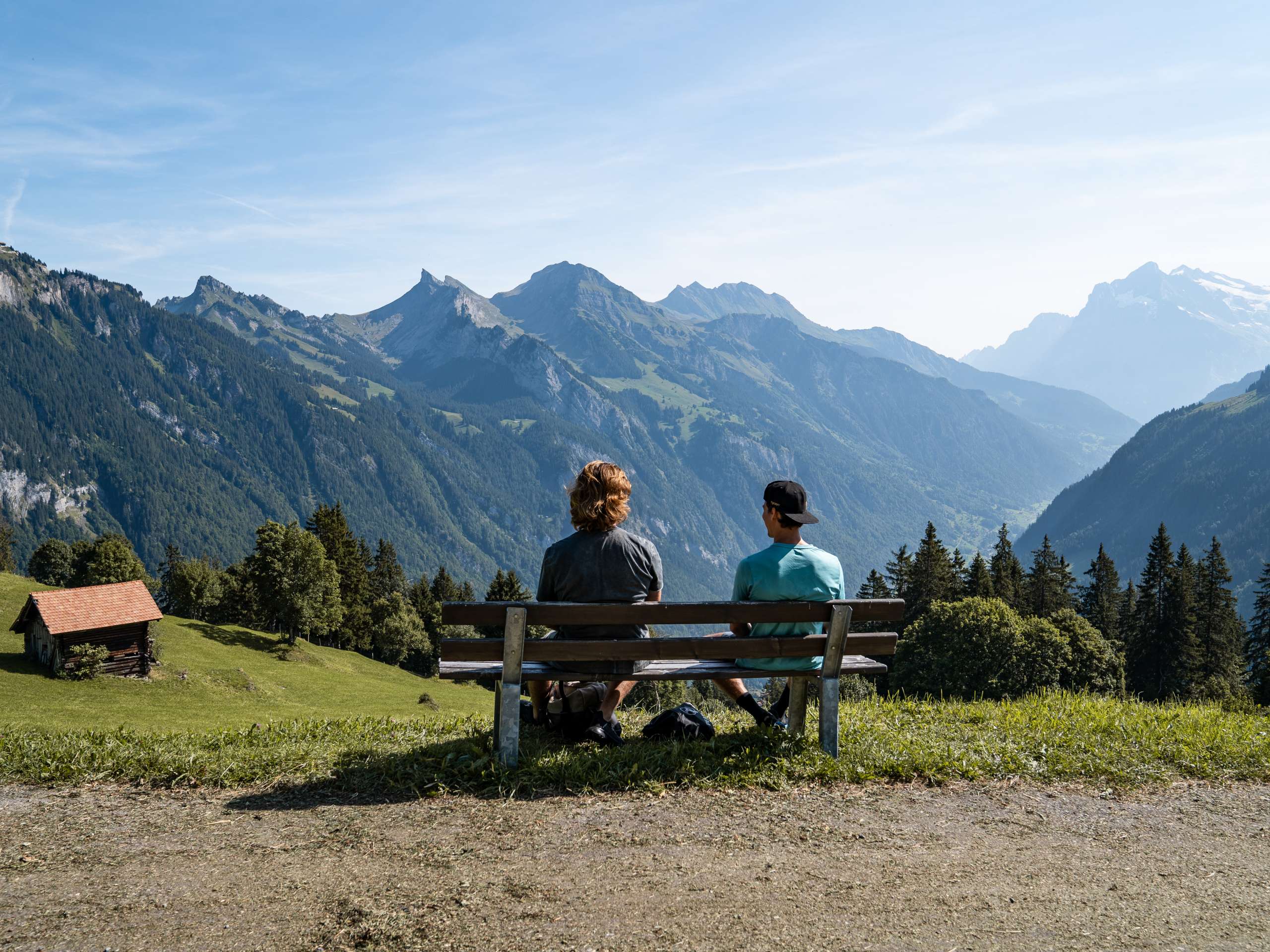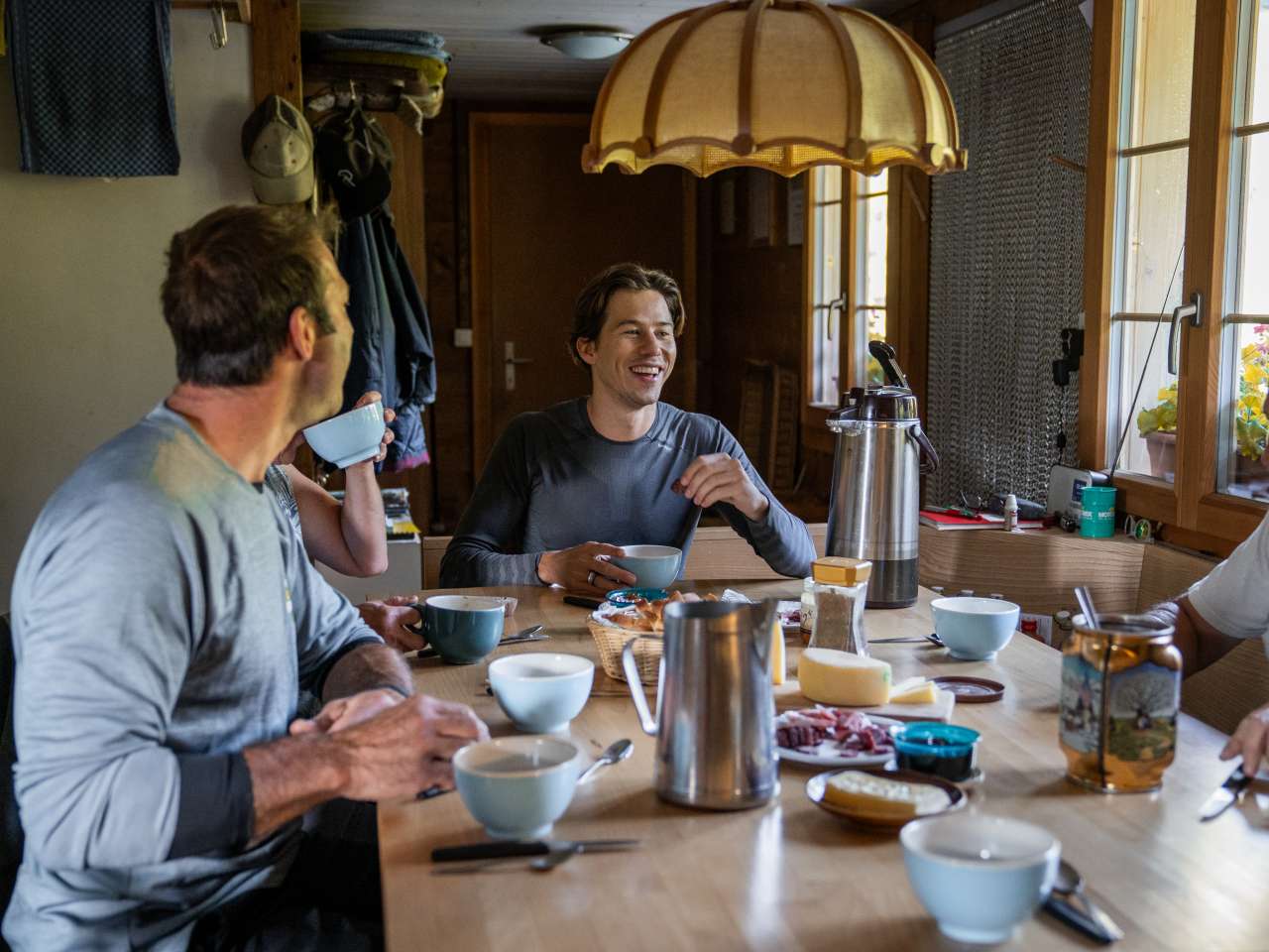 It's only 1 p.m. when we get back to Grindelwald. ‘We've already experienced so much. It feels like we've already had a long, intense day.’ And so the rest of the day is spent relaxing. At the Hotel Sunstar in Grindelwald, where he is staying for the four days in the Jungfrau Region. On the sun terrace. But Joel Mattli also raves about his room ‘with an almost 360-degree view of the surrounding mountain panorama’. And about the fine food in the Adlerstübli. In the evening, he is also reminded of how quickly the weather can change in the mountains. ‘Just a few seconds ago there was still a blue sky – and seconds later a thunderstorm was rolling over Grindelwald. That was crazy.’ But it is also the only time in the four days that the sun is covered by clouds. Only for a few minutes. After that, the weather is back to its best. And then Joel Mattli receives a visitor for the duration of the trip. From Raphael Schmid, a colleague he met about ten years ago in military training school.