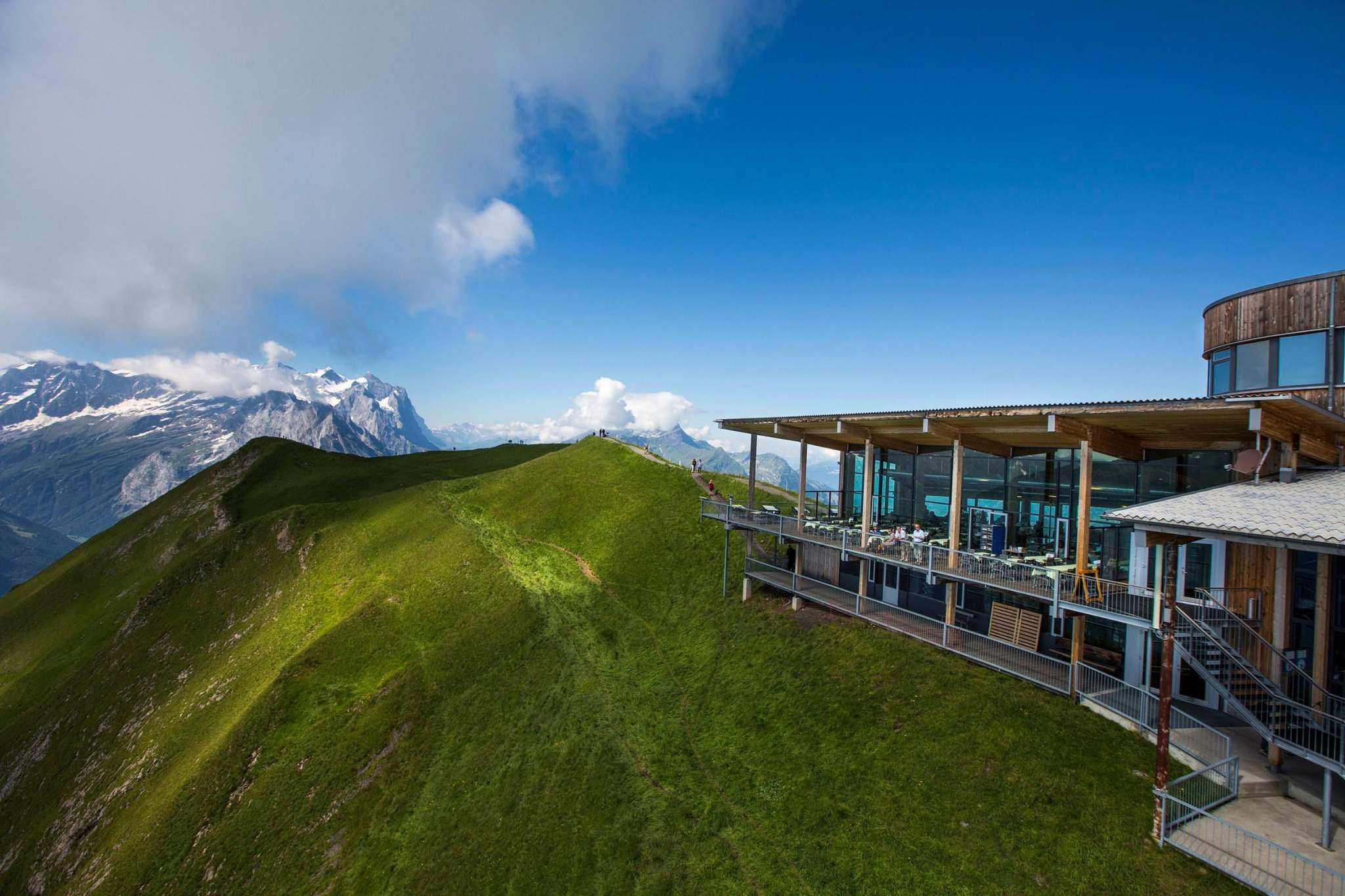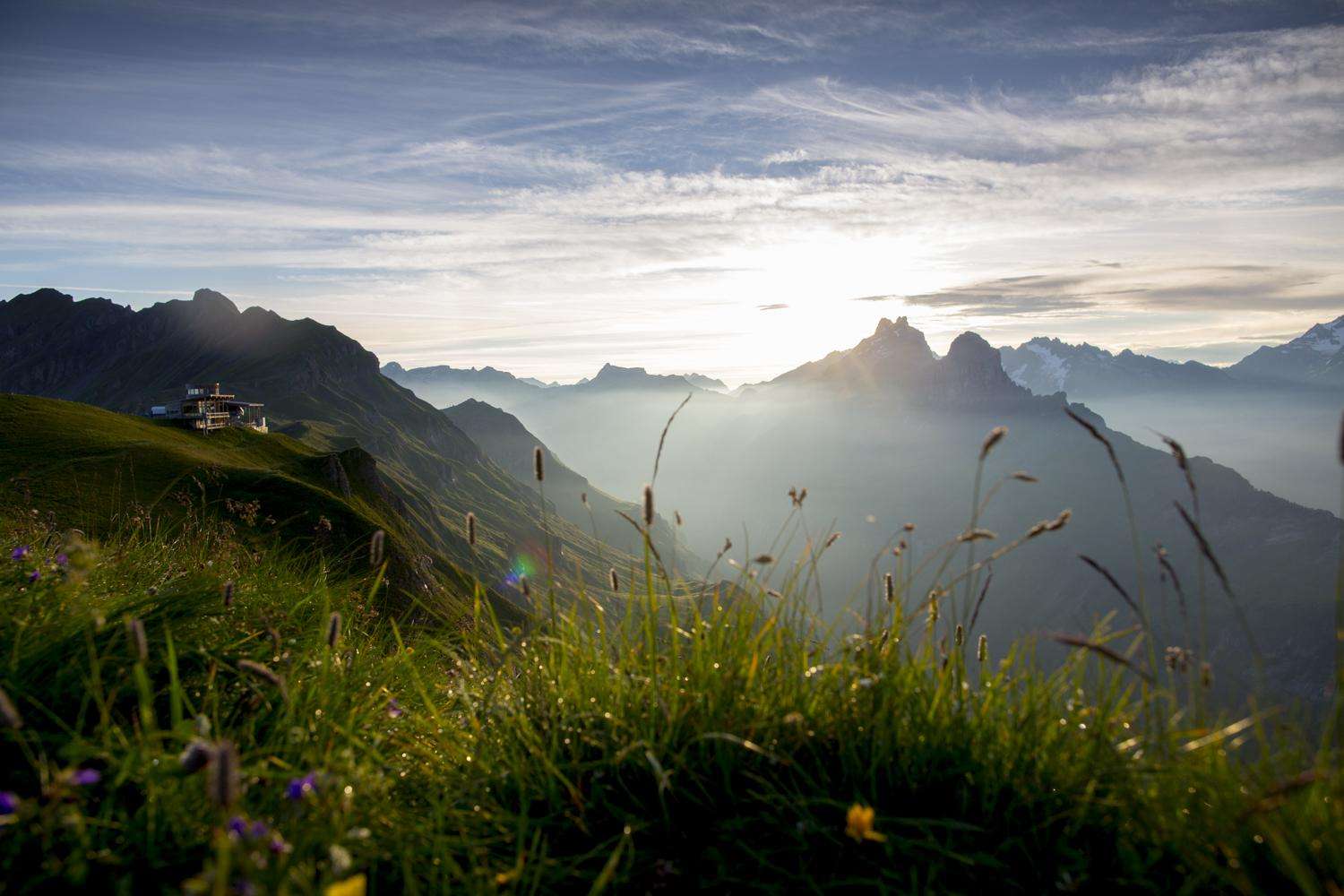 The Alpen tower offers a spectacular 360° panoramic view of the surrounding mountains and the Haslital - and in summer it is an ideal starting point for hikes and paragliding flights. The Alpen tower showroom is also home to a true Muggestutz centrepiece. A 15 metre wide and around 2.5 metre high staging of a winter sequence from the book "An Extraordinary Winter".