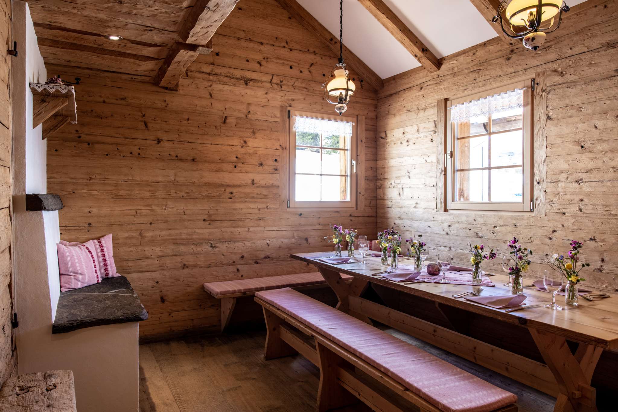 For decades, local alpine herdsmen milked their cows and made the flavoursome alpine cheese in this alpine hut. Due to the changing times, the hut was no longer used. In summer 2011, Karin & Ueli Grossmann-Schläppi respectfully converted the building, which dates back to 1858, into the Alprestaurant Balis. The old wood from the hut was reconditioned and reinstalled. Many details have been preserved or used for other purposes. The alpine hut has been reawakened!