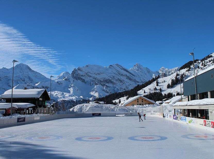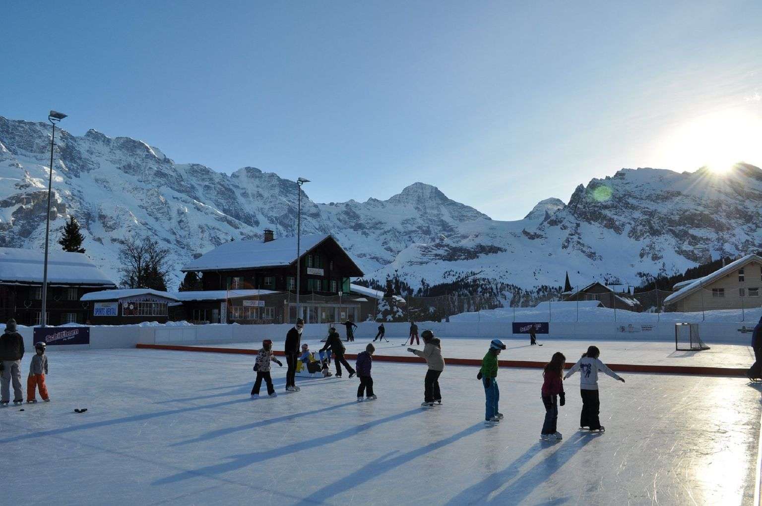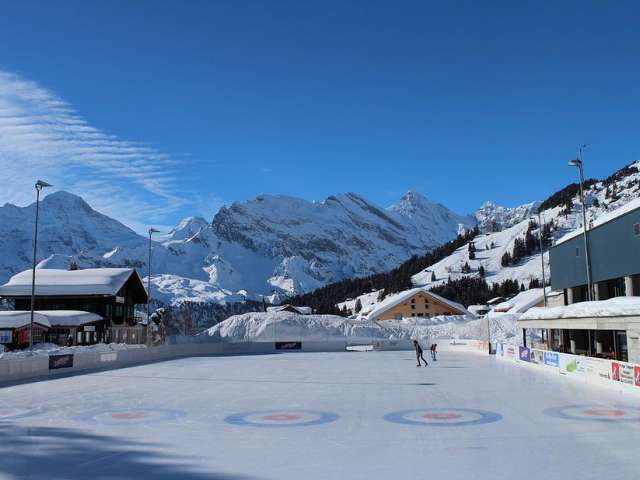 The open-air artificial ice rink impresses with a wonderful mountain panorama in the background. Whether ice skating, ice hockey, curling or ice disco - there's always something going on here.