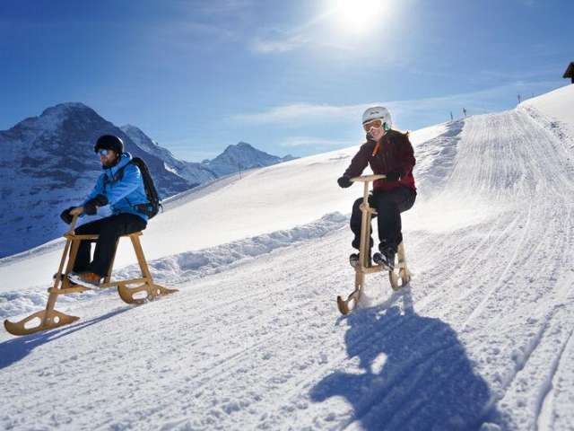 Crown your stay in Grindelwald with a night-time sledge run after a delicious cheese fondue in the Bussalp mountain restaurant. (Booking is essential; the run is not floodlit).