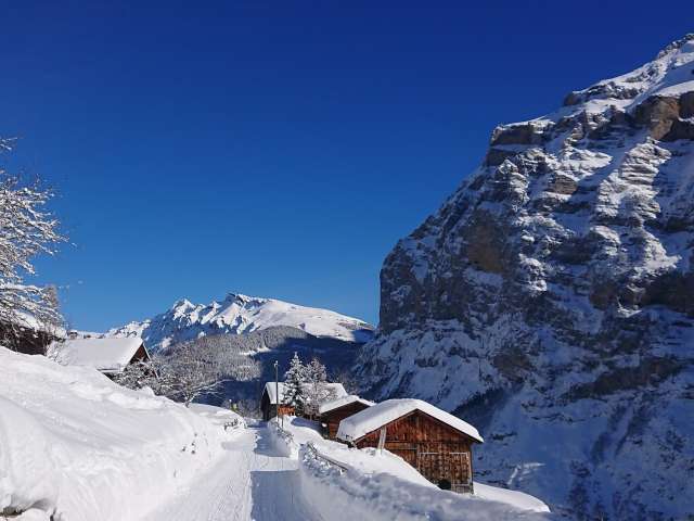 You can reach it by gondola cableway from Stechelberg or Mürren. A narrow mountain road also leads down to Gimmelwald from Mürren. In winter, this can be used as a sledging route.