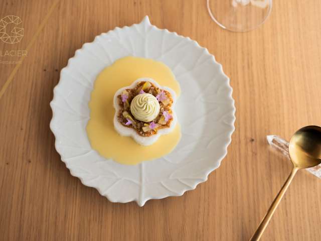 Indulge in a culinary journey at Restaurant Glacier, awarded 16 points at the GaultMillau, where our menu embodies a fusion of alpine tradition and French finesse. Chef Paul Cabayé’s vision guides our seasonal tasting menus, available in 5 or 7 courses, each meticulously crafted to showcase the vibrant flavors of the mountains.
