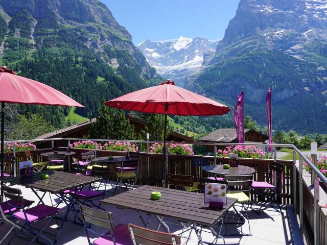 In summer the Hotel Alpenblick is the perfect starting point for hiking and bike tours in the wonderful scenery of the mountains of the Jungfrau Region. The bus stop is located just in front of the main entrance of the hotel. So you can easily reach every cable car by bus. On our nice sun deck with view of the Grindelwalder Alps, you can relax after a hard day in the mountains or just enjoy the view of the Eiger and the rest of the wonderful mountains of Grindelwald.