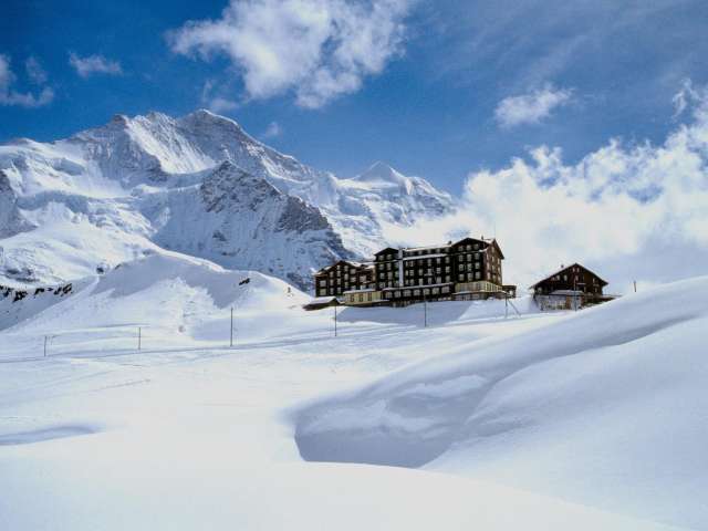 The Hotel Bellevue des Alpes is one of the few grand hotels of the 19th century still in existence. It is located on Kleine Scheidegg, high above Grindelwald and Wengen, at 2070 metres above sea level, at the foot of the Eiger, Mönch and Jungfrau, surrounded by alpine beauty. As the centre of the skiing and hiking region, Kleine Scheidegg is also the direct starting point to the Jungfraujoch. The historically significant hotel is still run as a family business today. Attached to the hotel is a daytime restaurant with 150 seats.