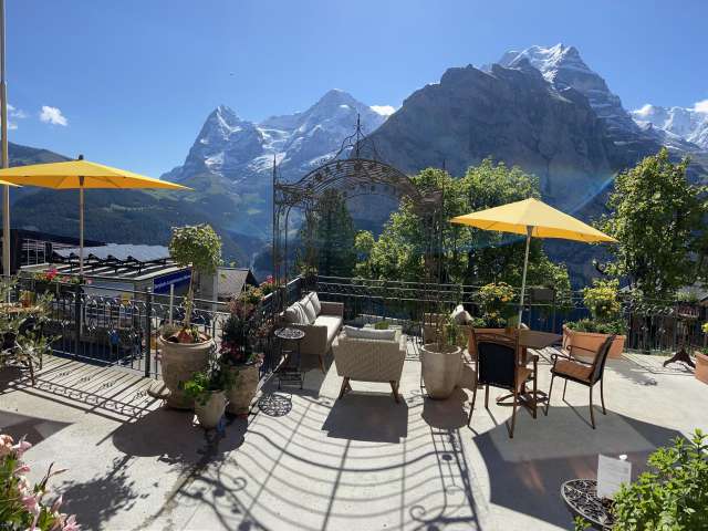 In the middle of the Alps we are easily accessible at 1650m and on a sunny plateau. Our unique location directly in front of the triumvirate of the Eiger Mönch and Jungfrau enables a colossal mountain view.