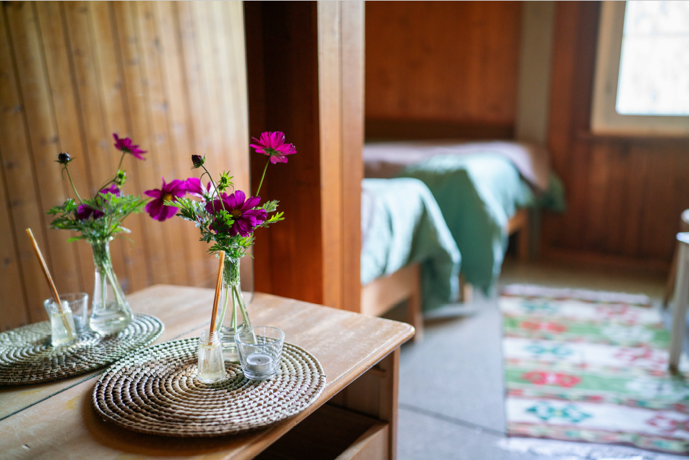 In the middle of the Rosenlaui/Reichenbachtal valley, the Naturfreundehaus Reutsperre has been hosting a wide variety of people from different countries and cultures every year for over 100 years. Situated at 1300 metres above sea level, it has listened to countless stories, poems and songs. In the evening, it has succeeded for years in bringing everyone together at one table, the Tavolata, and surprising them with culinary delights. Whether in summer under a starry sky or in winter by the fireplace, the house can be visited at any time of year and each season brings its own rhythm and charm. Depending on the size and needs of your group or project, you can book one of the 9 rooms in different sizes.