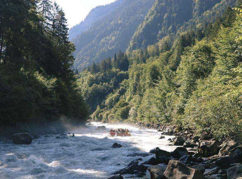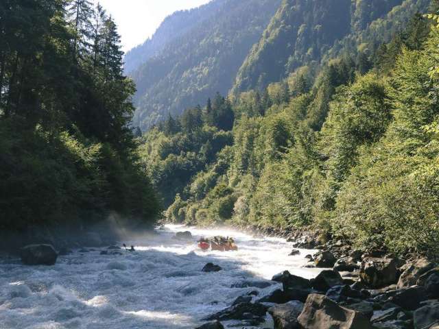 The qualified guides will lead you safely through the foaming waters and keep you entertained. The Lütschine is a raging, challenging torrent, but can be tackled by anyone. You can embark on one of the best rafting routes in Switzerland in Lütschental. You can get out in Bönigen on Lake Brienzersee.