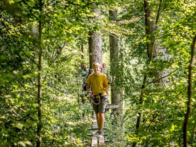 14 courses with varying degrees of difficulty and 160 exciting tasks are waiting for you to master them. While the little ones have fun on the stable beginner's course close to the ground, others can find their challenge in the treetops at heights of up to 23 meters. Allow 2.5 to 3 hours for this all-weather activity.