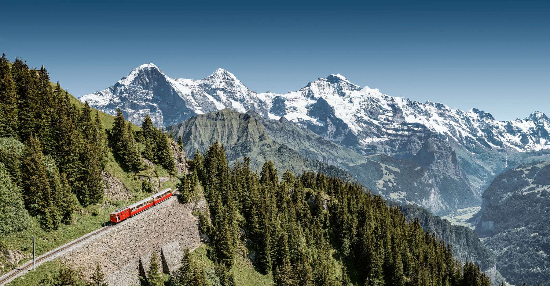 Along the way, the diversity of nature is impressive: forests, alpine meadows and the magnificent views of the famous landscapes of the Bernese Oberland with Lakes Thun and Brienzersee.