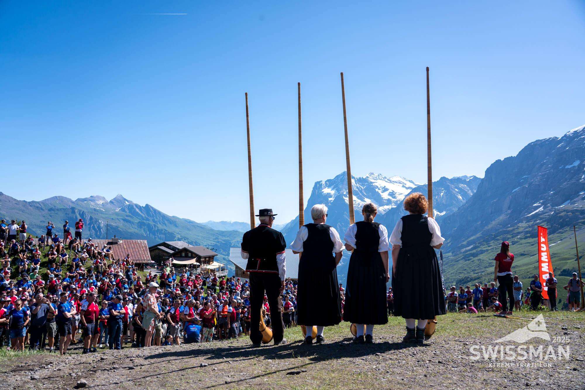 After starting at the Palmen in Ticino, the route heads into the mountains, past glaciers and snowfields through the cantons of Uri and Valais into the Bernese Oberland. There, the route first climbs up to the Giessbach waterfalls, continues along Lake Brienz and then up to Grindelwald, where the final ascent to Kleine Scheidegg awaits. The athletes have to master this climb together with their supporters. They finish the SWISSMAN Xtreme Triathlon together against the imposing backdrop of the Eiger, Mönch and Jungfrau.