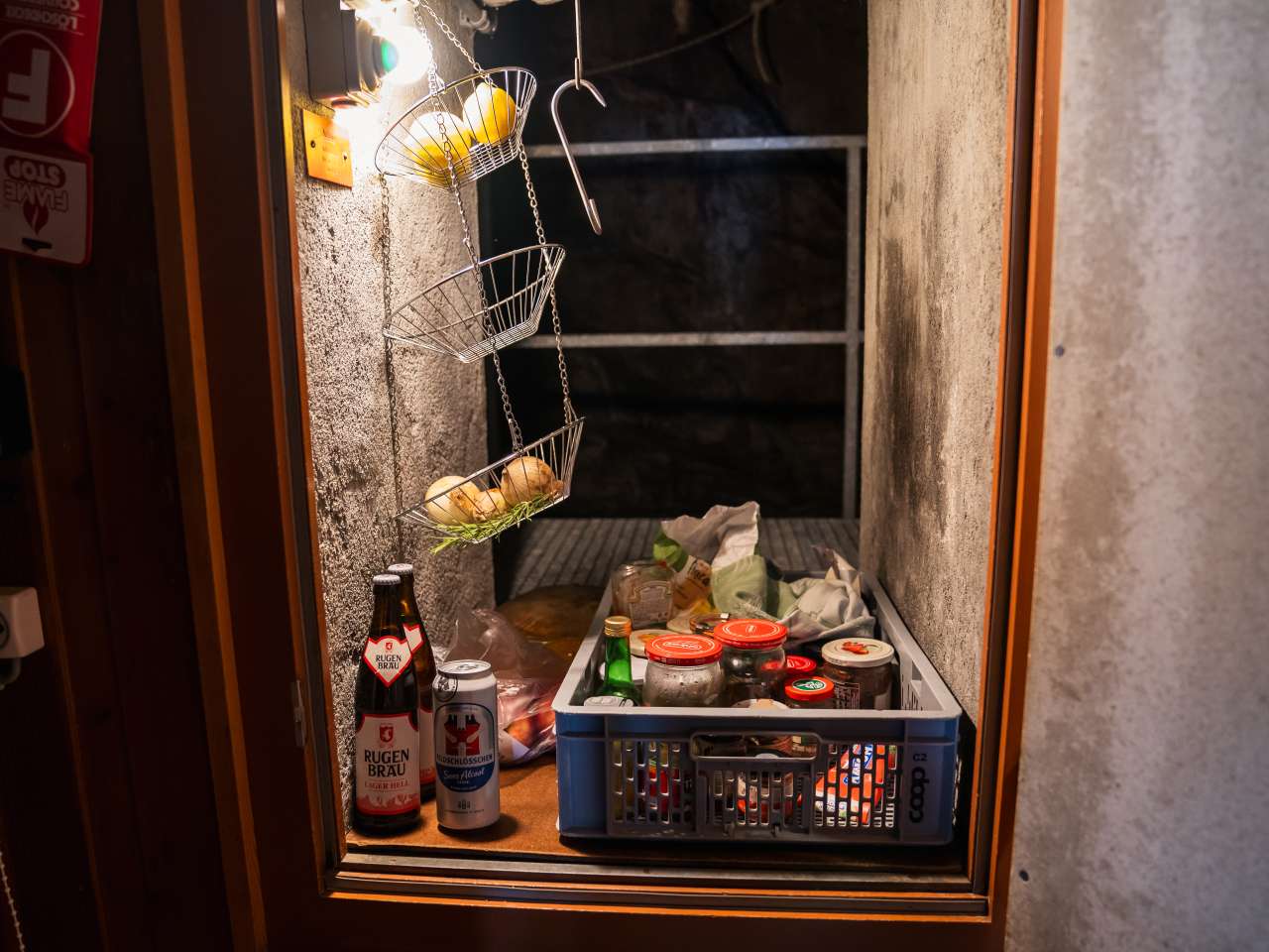 Mon estomac se fait sentir. Heureusement, c'est l'heure du déjeuner. Nous nous rendons de nouveau dans le bâtiment de recherche, chez Sonja Stöckli et Thomas Furter. Les deux couples d'agents d'exploitation ont leur propre chambre à coucher sur des étages différents. Le salon et la cuisine sont partagés. Dans le salon, il y a un vélo de fitness. «Sonja en a besoin régulièrement», nous apprend Thomas Furter. Ce qui est spécial, c'est «l'extension du frigo», comme ils appellent l'ouverture vers le Stollen. Il y fait constamment assez froid tout au long de l'année. L'équipe d'exploitation commande les aliments par e-mail à la Coop Wengen. Un service que le magasin propose. Ils sont livrés par les Jungfraubahnen. Tu le sais ? Avec 3801, le Jungfraujoch dispose de son propre code postal. «Lorsque nous commandons quelque chose, on nous demande parfois l'adresse de livraison», dit Sonja Stöckli - et elle rit. Mais revenons à la raison pour laquelle nous sommes ici. Le déjeuner. Chez Stöckli/Furter, on ne cuisine généralement que le soir. «Pour le déjeuner, on se contente généralement de pain et de fromage». C'est le cas aujourd'hui. Nous accordons au couple une pause bien méritée. Aussi parce que notre faim ne diminue pas lorsque nous les regardons manger. Nous aussi, nous nous restaurons - au milieu des touristes, quel changement de décor. Ensuite, nous devenons nous-mêmes brièvement des touristes - nous faisons un détour par le palais de glace et le plateau. Et nous constatons que le brouillard se dissipe.