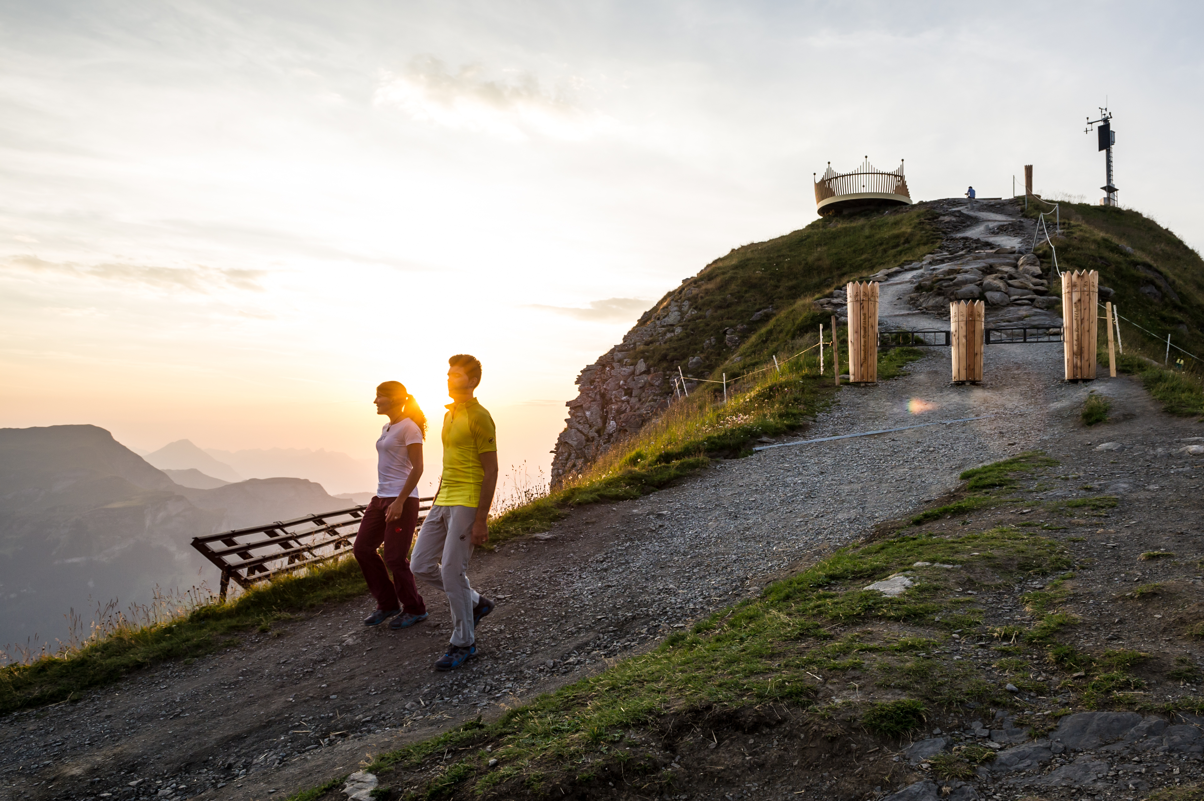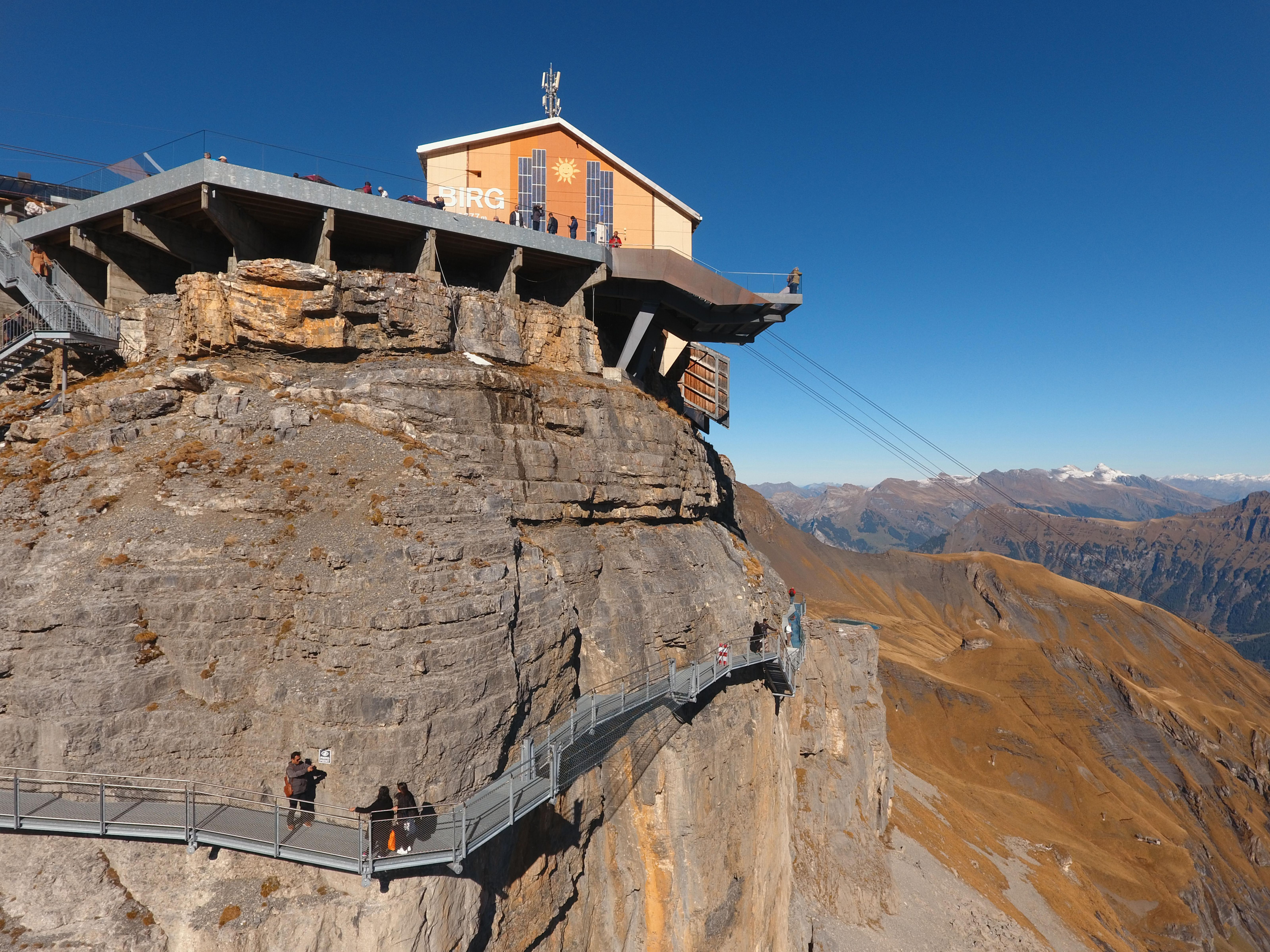 Au Schilthorn, le Thrill Walk attend les amateurs de sensations fortes et les photographes. Un sol en verre, des câbles métalliques et des tunnels grillagés longent de manière spectaculaire la paroi rocheuse, offrant une vue imprenable sur Mürren, l'arrière de la vallée de Lauterbrunnen et les sommets enneigés des Alpes.