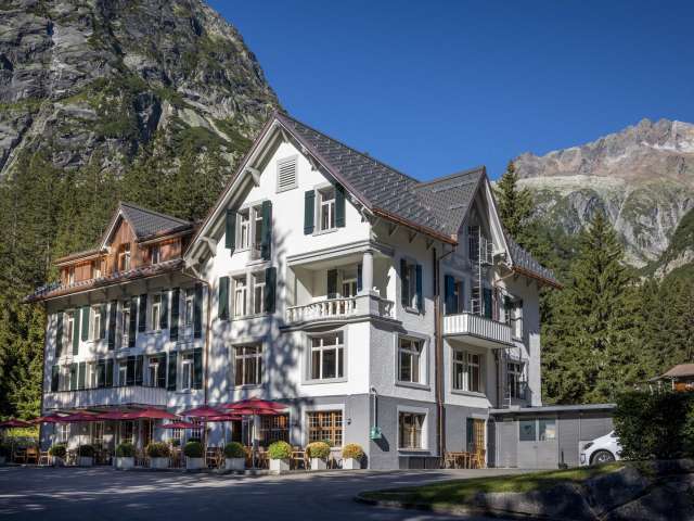 Sur la route du col du Grimsel, l'hôtel Handeck est une oasis au milieu du monde de la montagne.