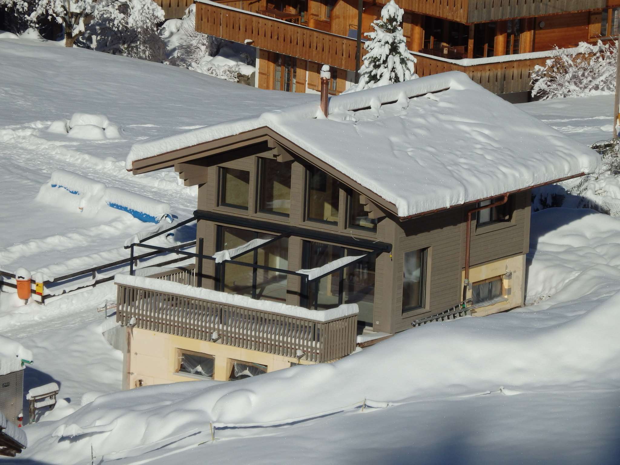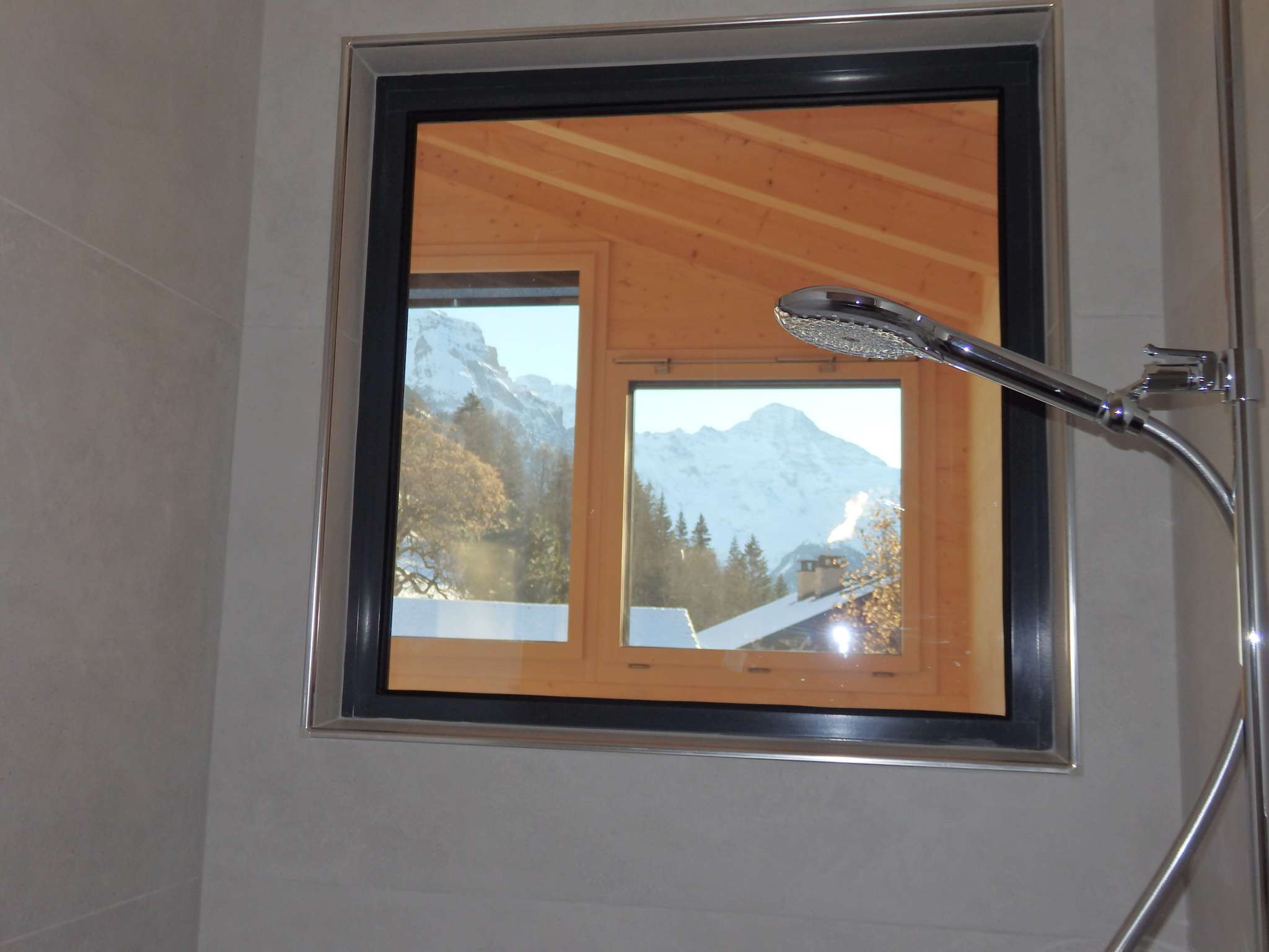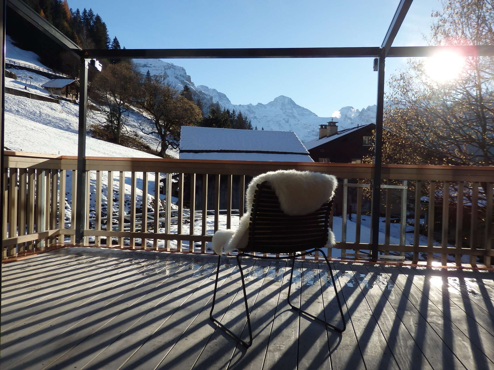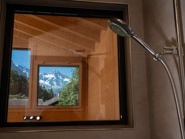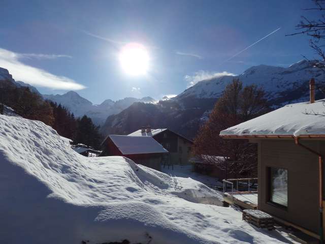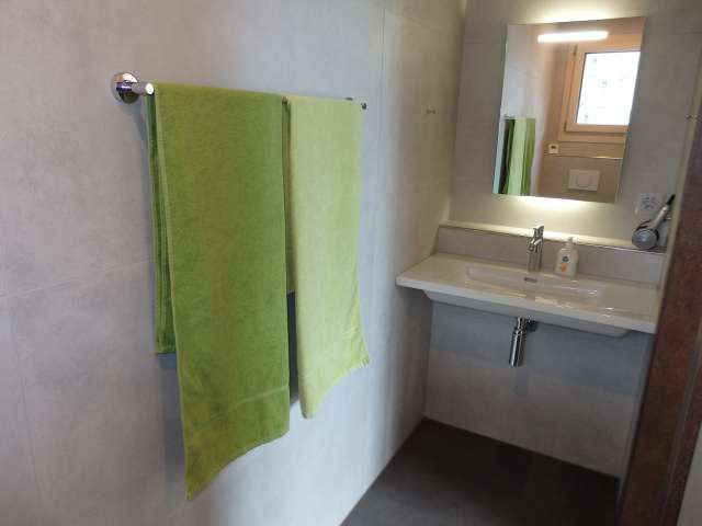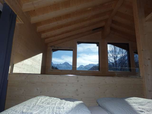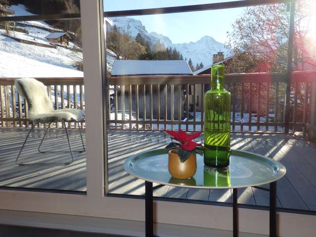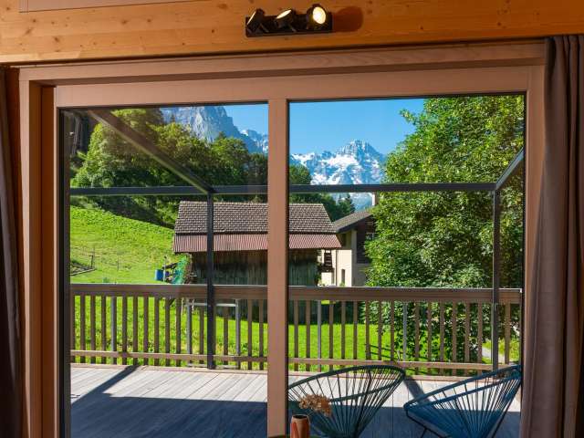 Au milieu des montagnes, très calme avec une grande terrasse et un terrain.
